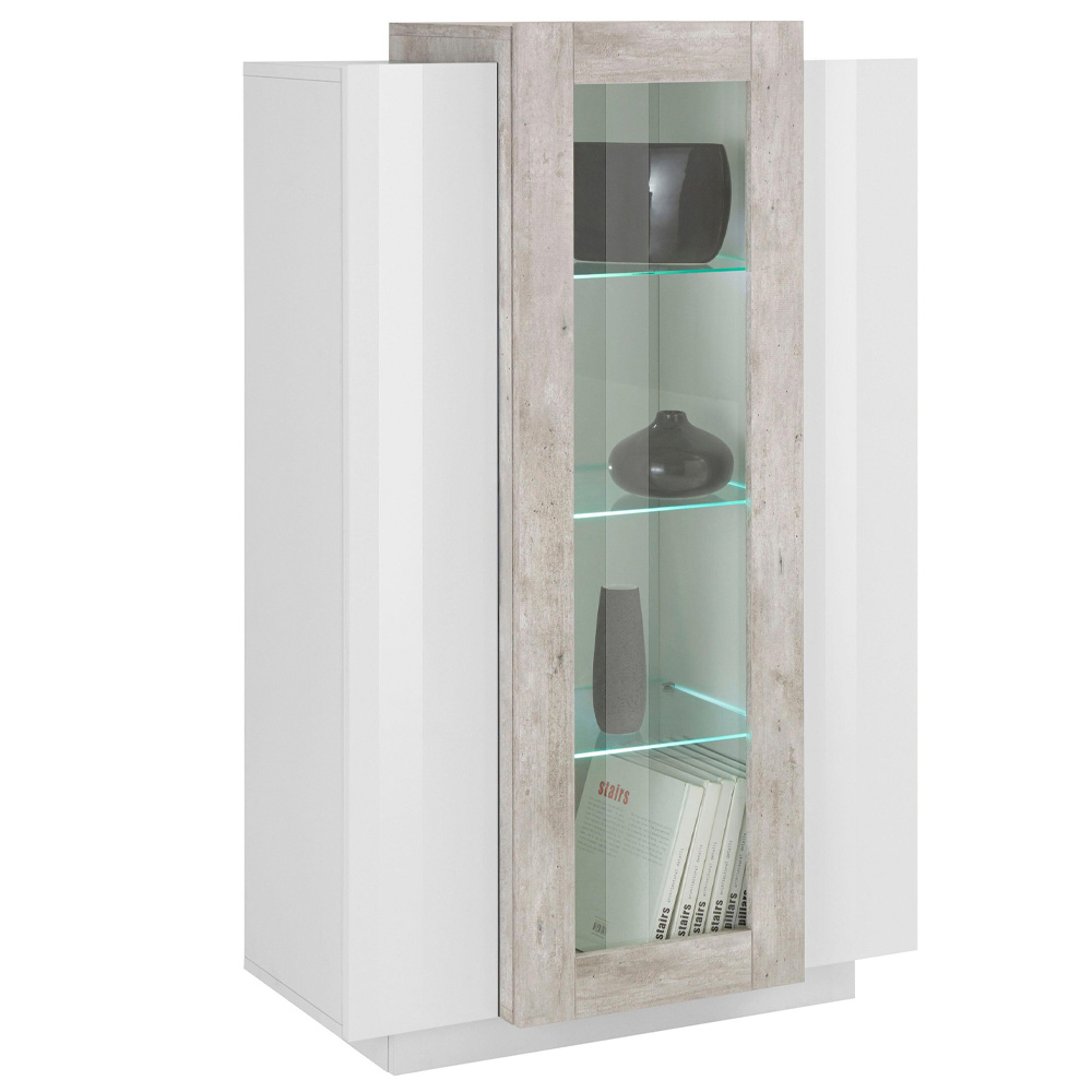 Witryna z 3 drzwiami z błyszczącego białego drewna i 3 wykończeniami z melaminy z lub bez led, wyprodukowana we Włoszech.
