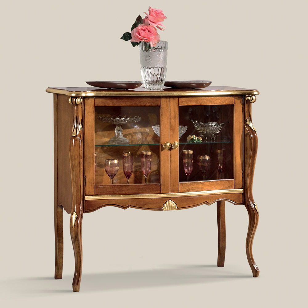 salonu wykonana z drewna i wyposażona w 2 eleganckie szklane drzwi, idealna do dekoracji salonu z ponadczasową elegancją. Dostępna w dwóch wariantach: