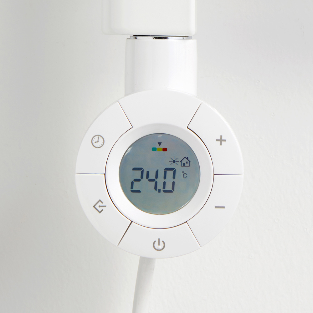 - W komplecie z kontrolą temperatury, datą i godziną, wyborem trybu (Eco, Otwarte okno, Komfort, Przeciwzamarzaniowy, Nocny, 2-godzinny timer) oraz wskaźnikiem włączenia.