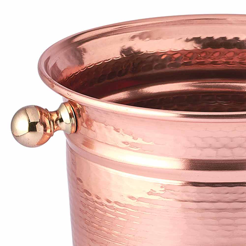 Zaprojektuj wiaderko do lodu na wino w kolorze polerowanej młotkowanej miedzi lub zieleni pompejańskiej, wyprodukowane we Włoszech.
