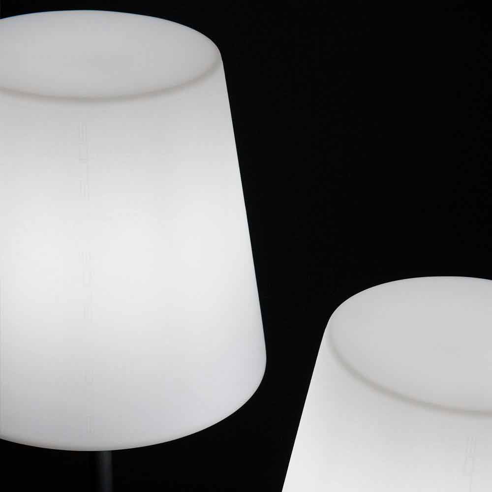 Klosz wykonany jest z polietylenu w kolorze jasnej bieli, a podstawa ze stali ocynkowanej. Dostępne są trzy różne rozmiary tego mebla: