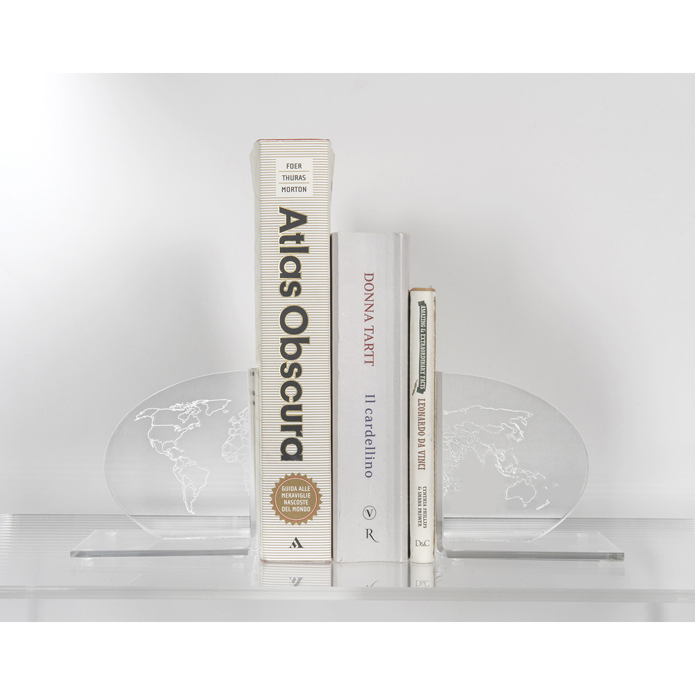 Podpórki do książek z przezroczystej pleksi, projekt mapy 2 sztuki wyprodukowane we Włoszech.