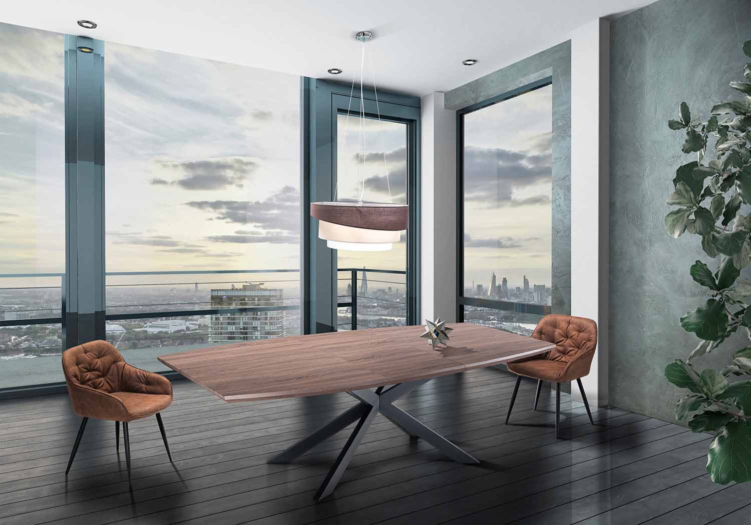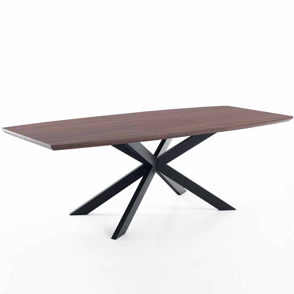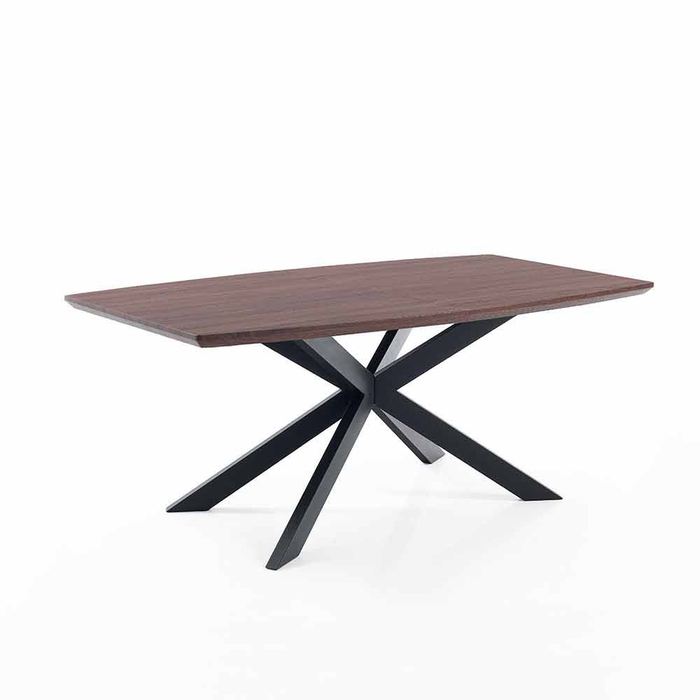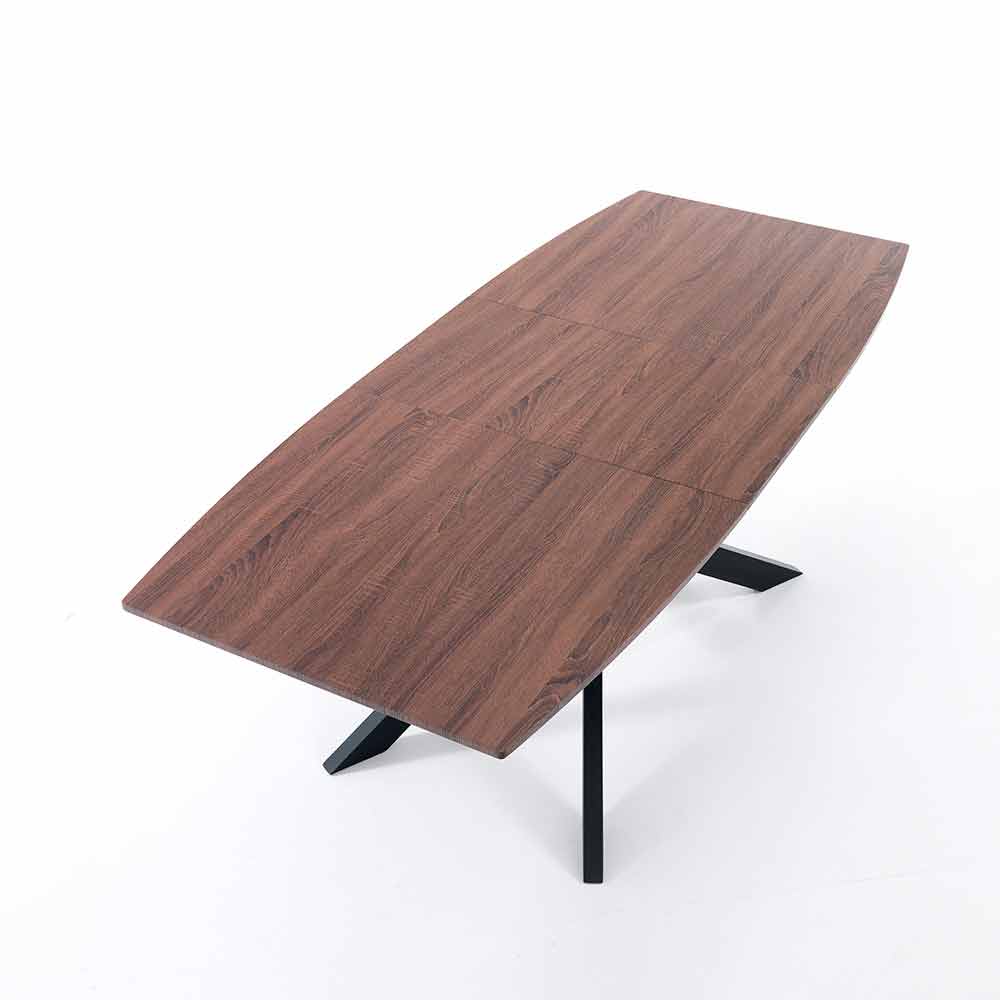 Torquato to genialny stół jadalny z możliwością przedłużenia,wykonany z blatu Mdf (grubość 4 cm) pokrytego papierem 3D w kolorze ciemnego orzecha i matowymi czarnymi metalowymi nogami.