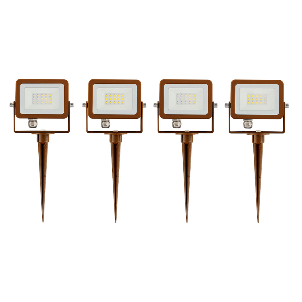 Zewnętrzny projektor led z aluminium z wykończeniem corten, 4 sztuki.