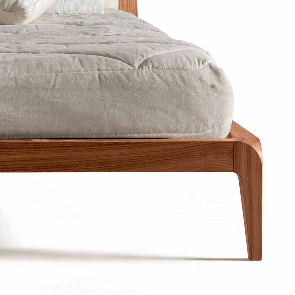 Wysokiej jakości materiały i realizacja made in Italy to główne elementy charakteryzujące podwójne łóżko Menardo. Łóżko wykonane jest z litego drewna w wezgłowiu i nogach, dźwigary, o długości ponad dwóch metrów, aby zapobiec złamaniu, wykonane są z płyty stolarskiej (litego drewna połączonego ze sobą, ale o mniejszych rozmiarach), które są następnie pokryte fornirem orzechowym. Specjalne wykończenie olejem ma kilka zalet. W porównaniu z tradycyjnymi lakierami, produkty na bazie naturalnego oleju lnianego wzmacniają usłojenie i właściwości drewna. Kiedy wchodzą w kontakt z włóknem drzewnym, krystalizują się, zajmując pory włókna drzewnego i jednocześnie tworząc barierę dla wchłaniania płynów (tj. brudu) i zwiększając odporność mechaniczną włókna drzewnego. Olej ten jest również hydrofobowy i odporny na warunki atmosferyczne oraz promieniowanie UV. Jest to zatem alternatywa nie tylko naturalna i ekologiczna, ale także przynosząca znaczące ulepszenia.