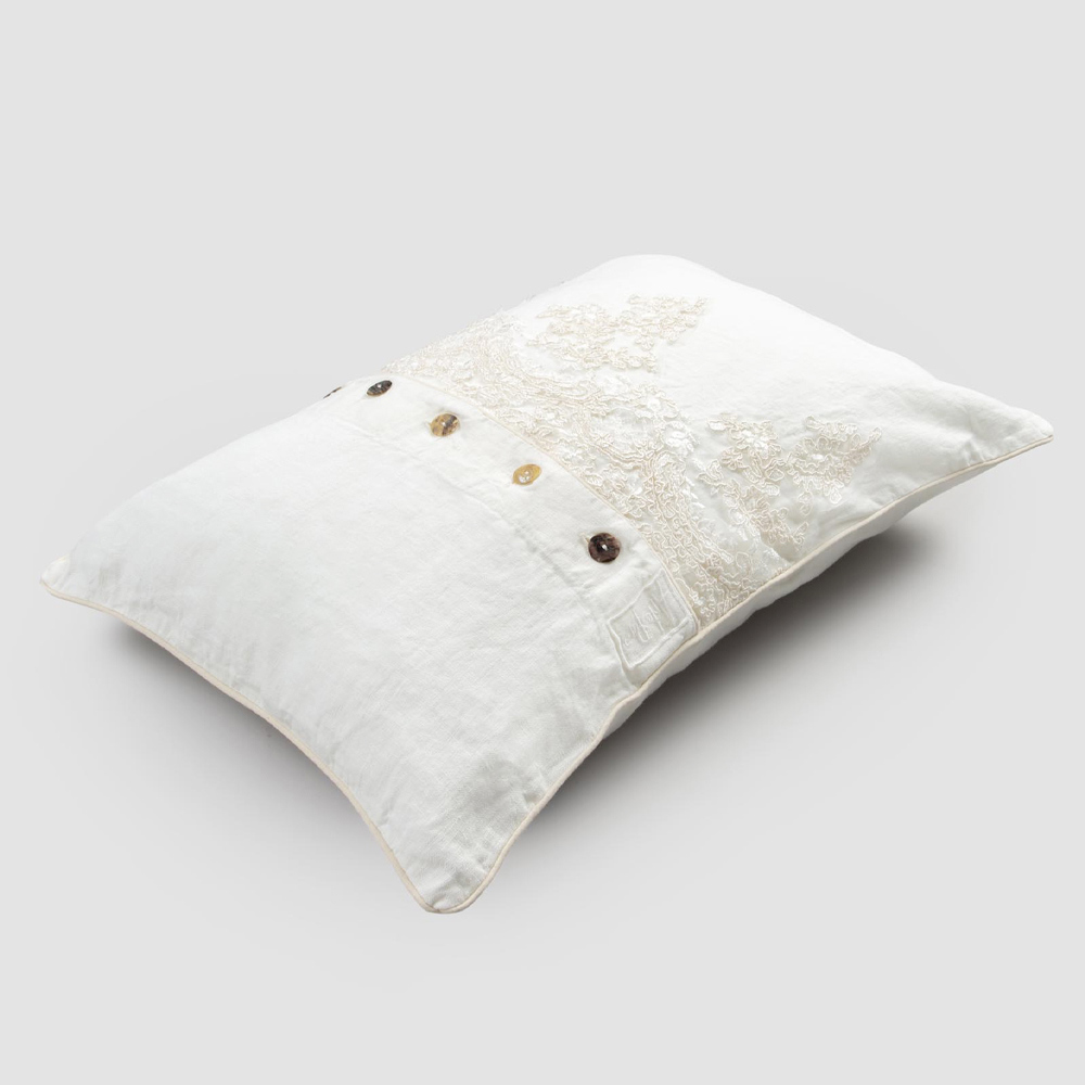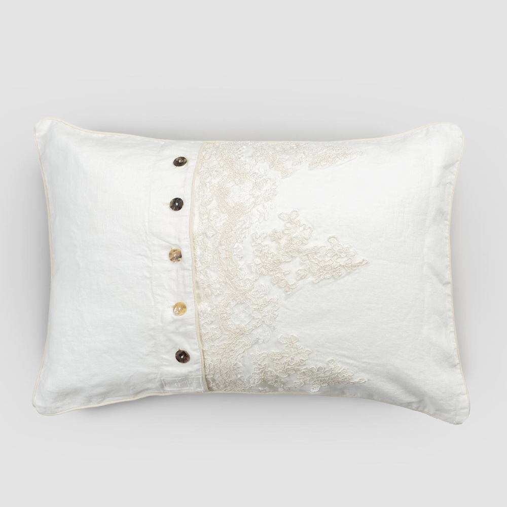 Poszewka z białego lnu z elegancką koronką, centralnymi guzikami i lamówką, luksusowa wykonana we Włoszech.