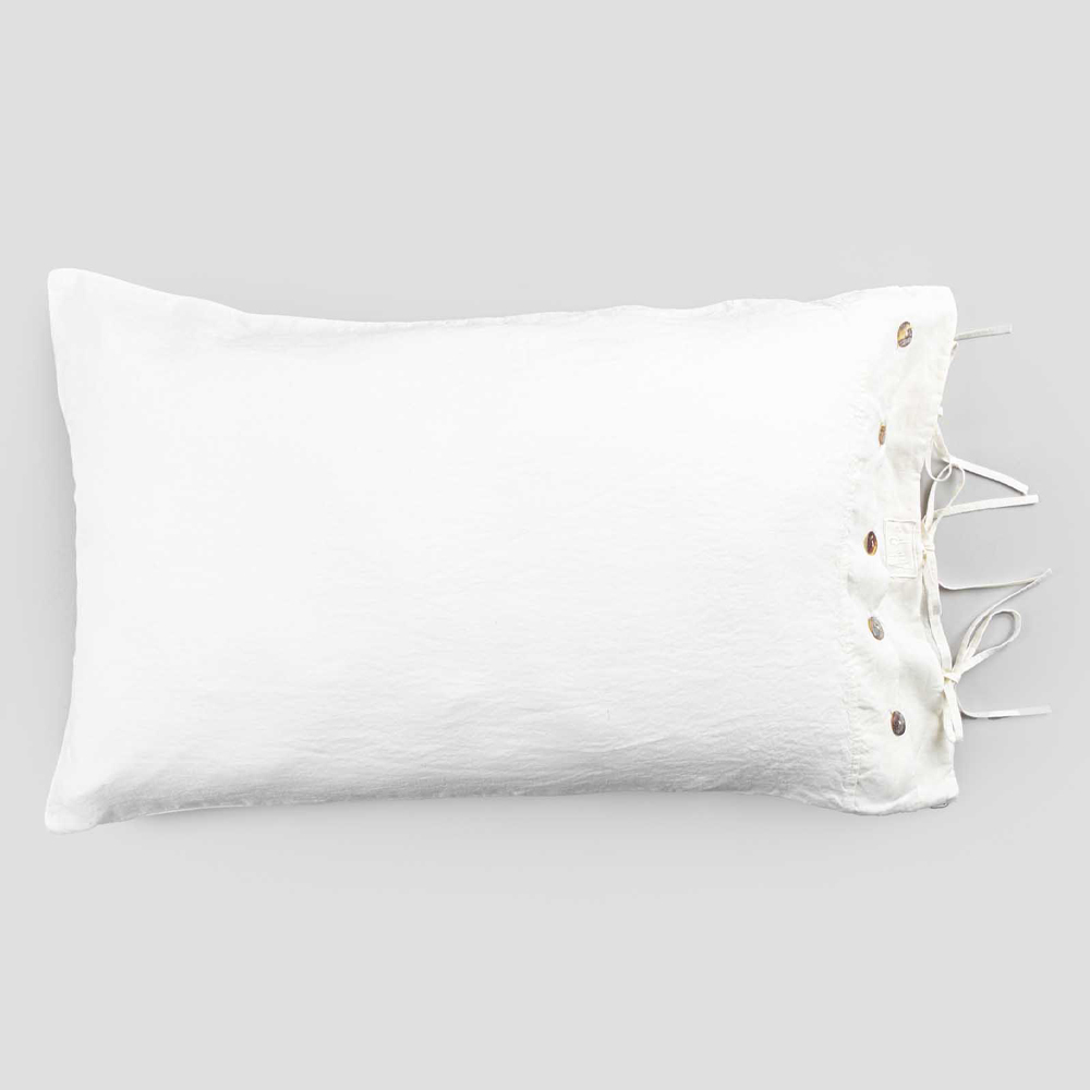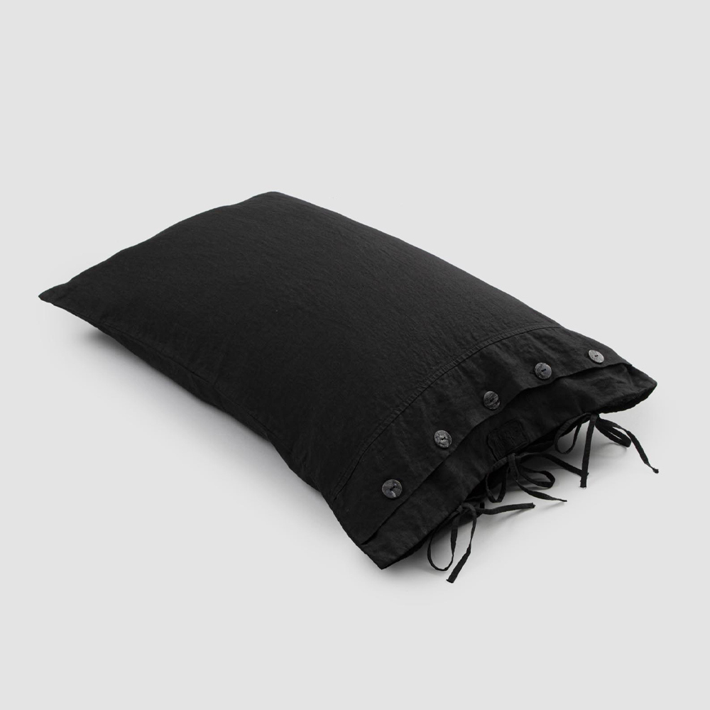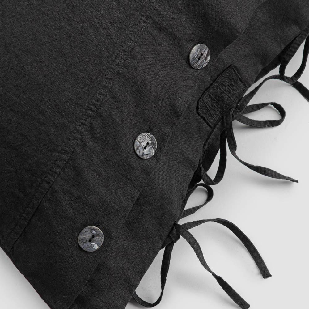 Luksusowa poszewka na poduszkę z białego lub czarnego lnu z guzikami i sznurowadłami wykonana we Włoszech.