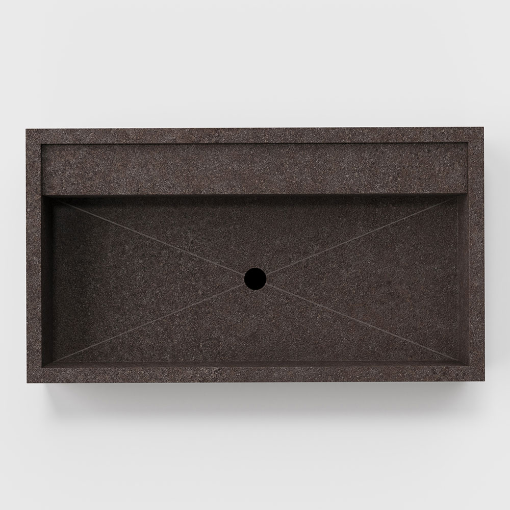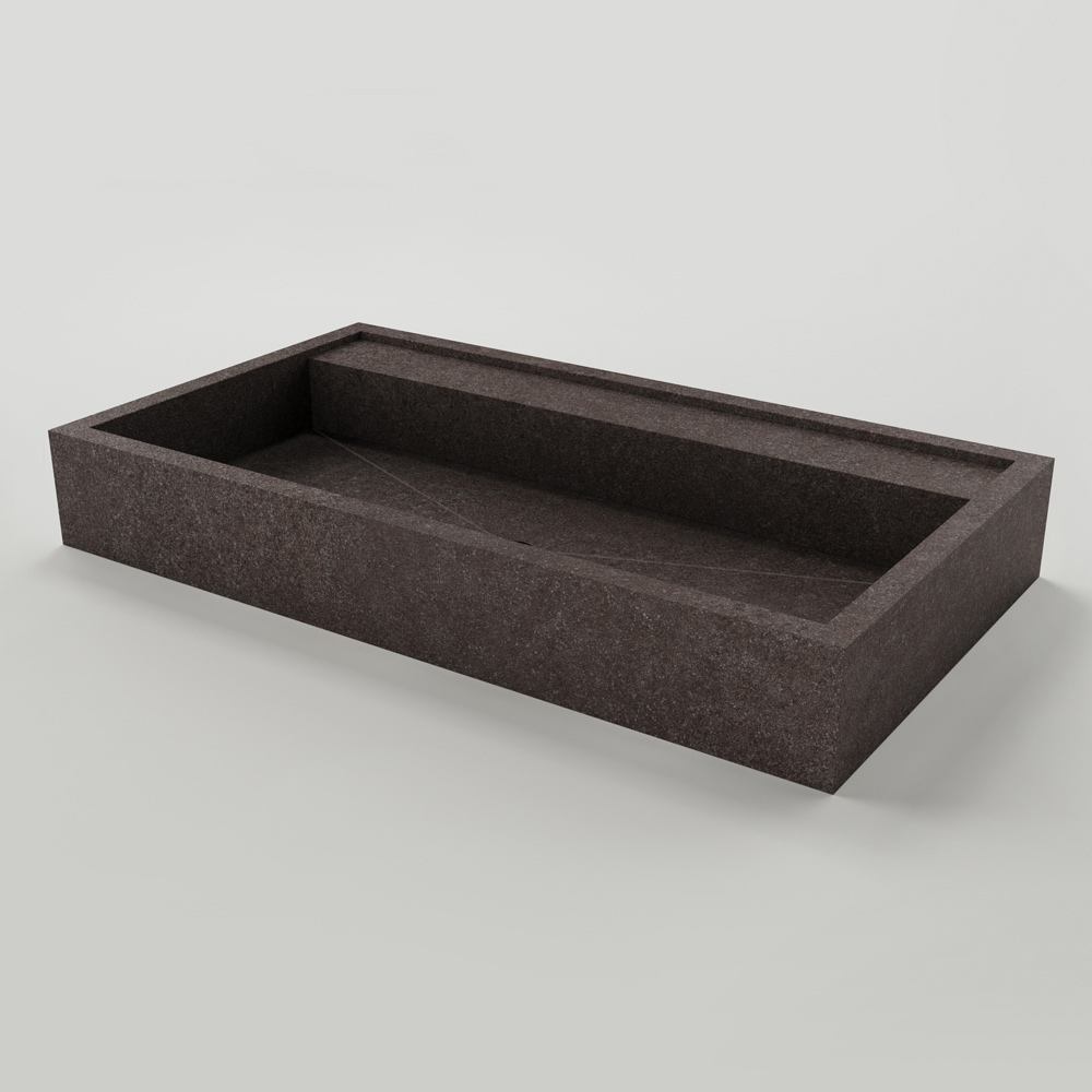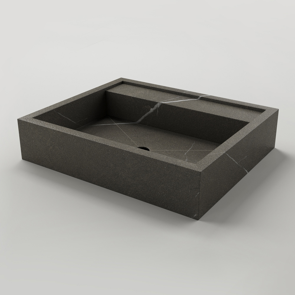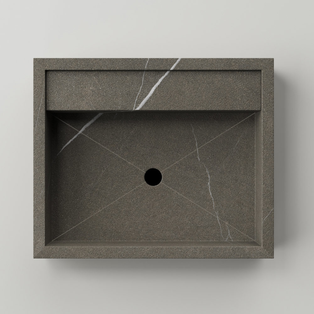 Prostokątna umywalka nablatowa z gresu porcelanowego imitującego kamień Made in Italy.