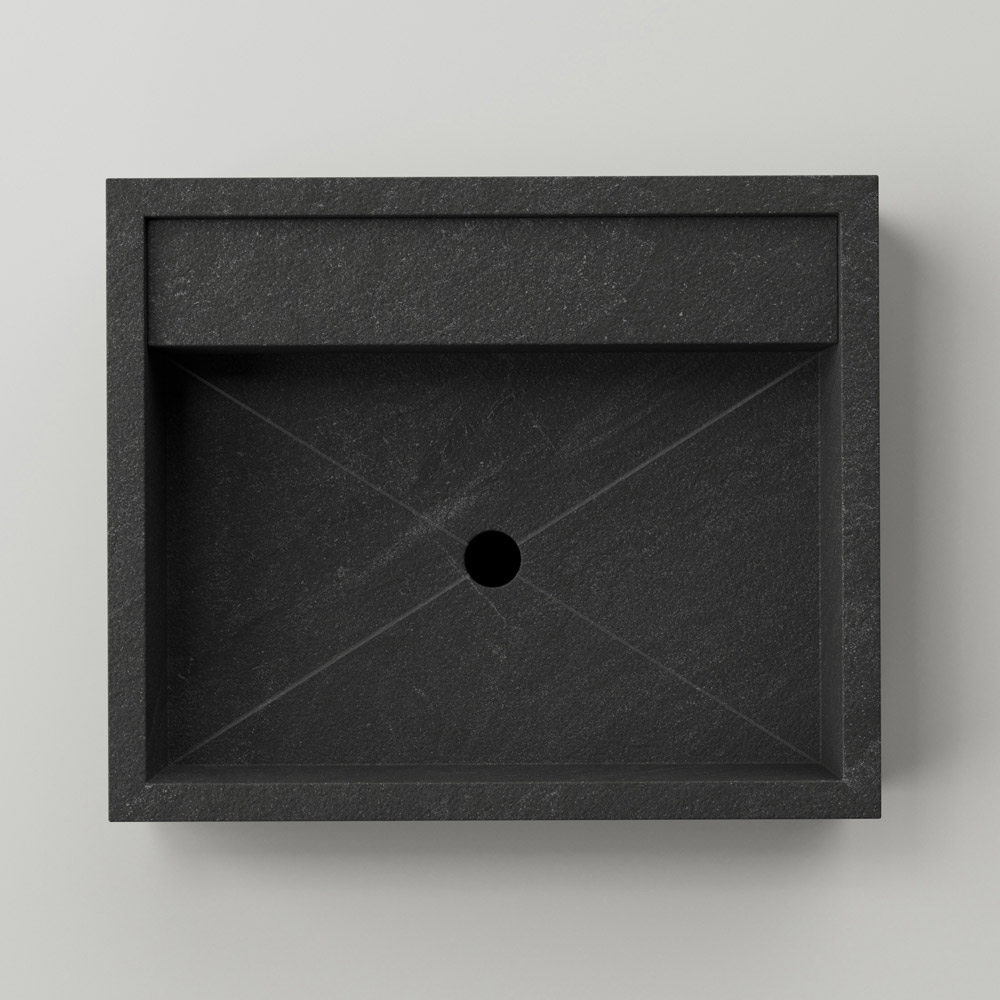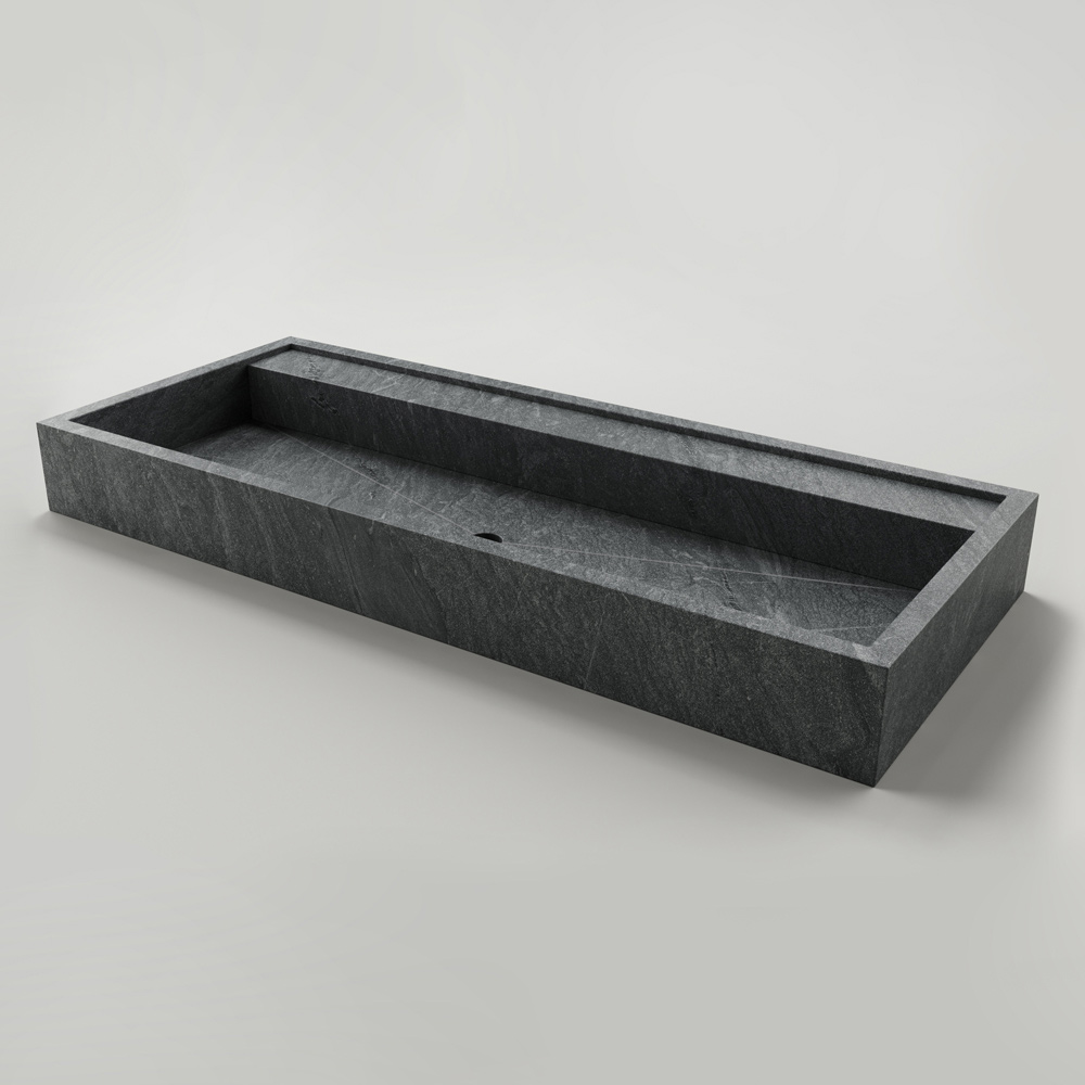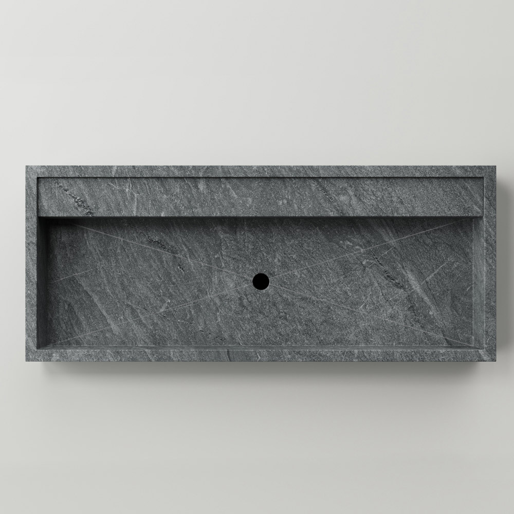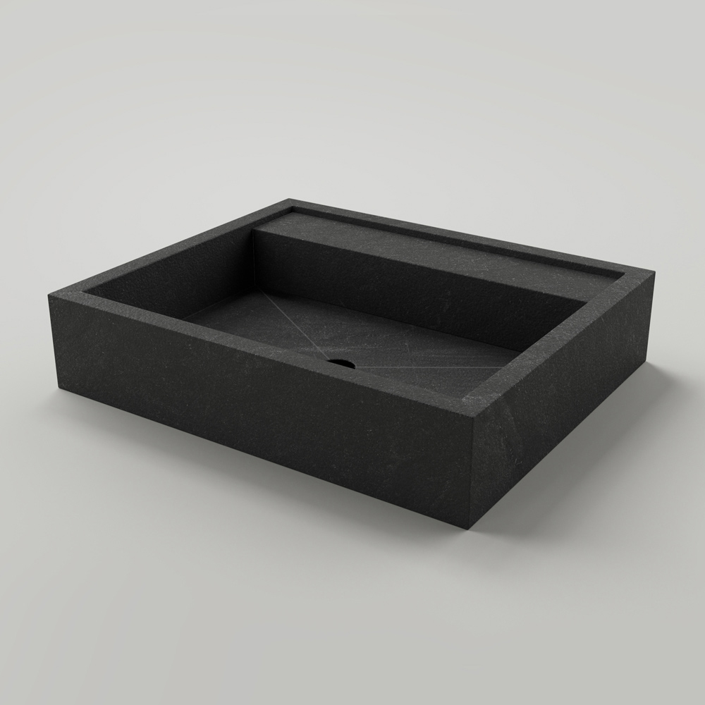 Prostokątna umywalka nablatowa z gresu porcelanowego imitującego kamień Made in Italy.