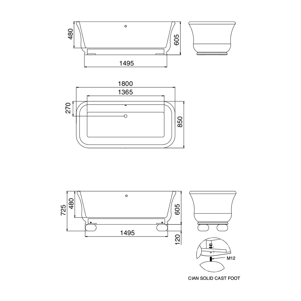 Uwaga: Krany, syfon i akcesoria nie są wliczone w cenę. Jeśli chcesz je kupić lub dostosować swoją wannę pod względem wykończenia i wymiarów, nie wahaj się skontaktować z nami za pomocą odpowiedniego formularza „ Poproś o informacje ”.
