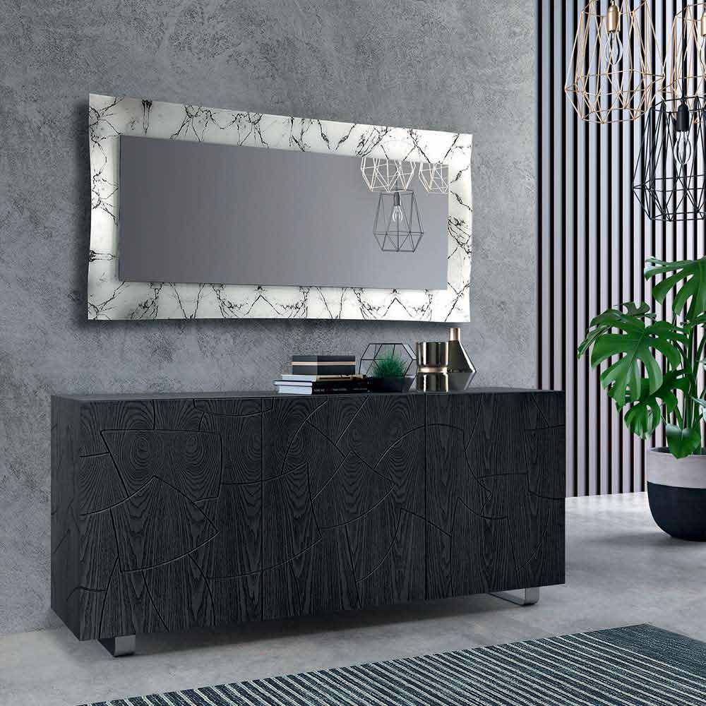 Prostokątne lustro z ramą z lustrzanym wykończeniem lub efektem marmuru Wyprodukowano we Włoszech.