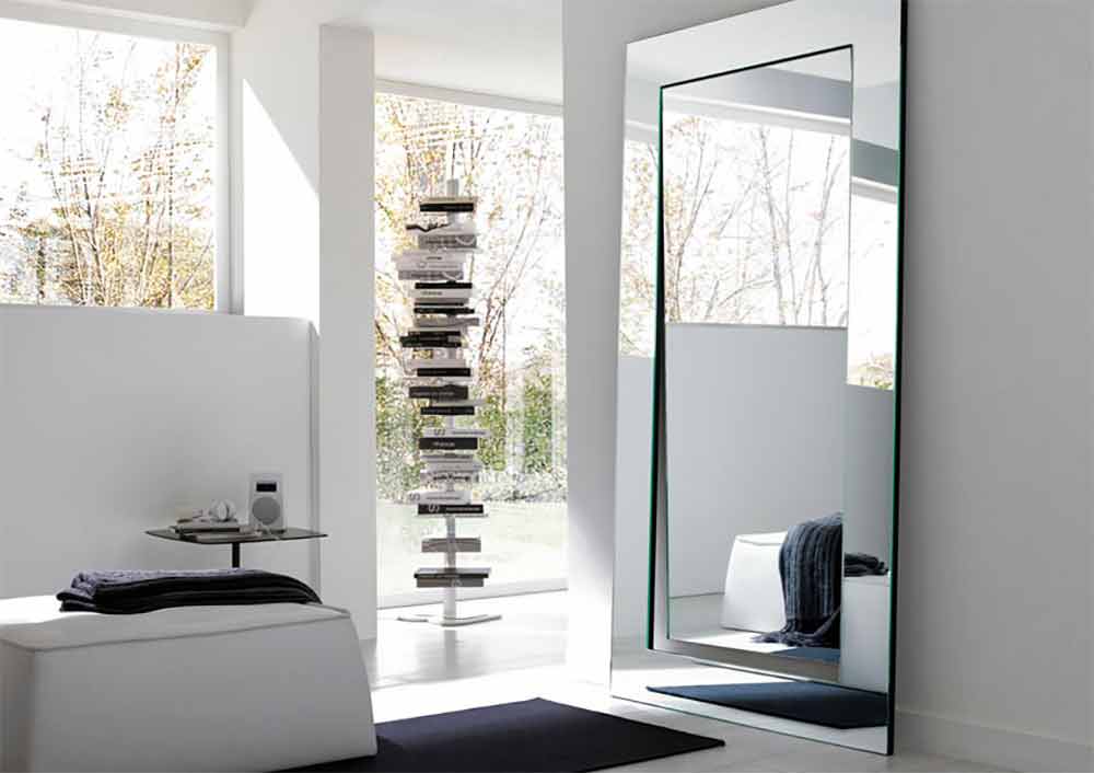 To prostokątne lustro wolnostojące jest luksusowym przedmiotem , realizowanym we Włoszech ręcznie. Jest on uzyskiwany z unikalnej tafli szkła o pochyłej ramie.