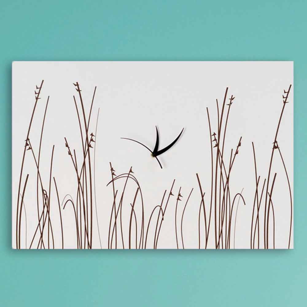 Duży prostokątny zegar ścienny o nowoczesnym designie z białego drewna, wyprodukowany we Włoszech.