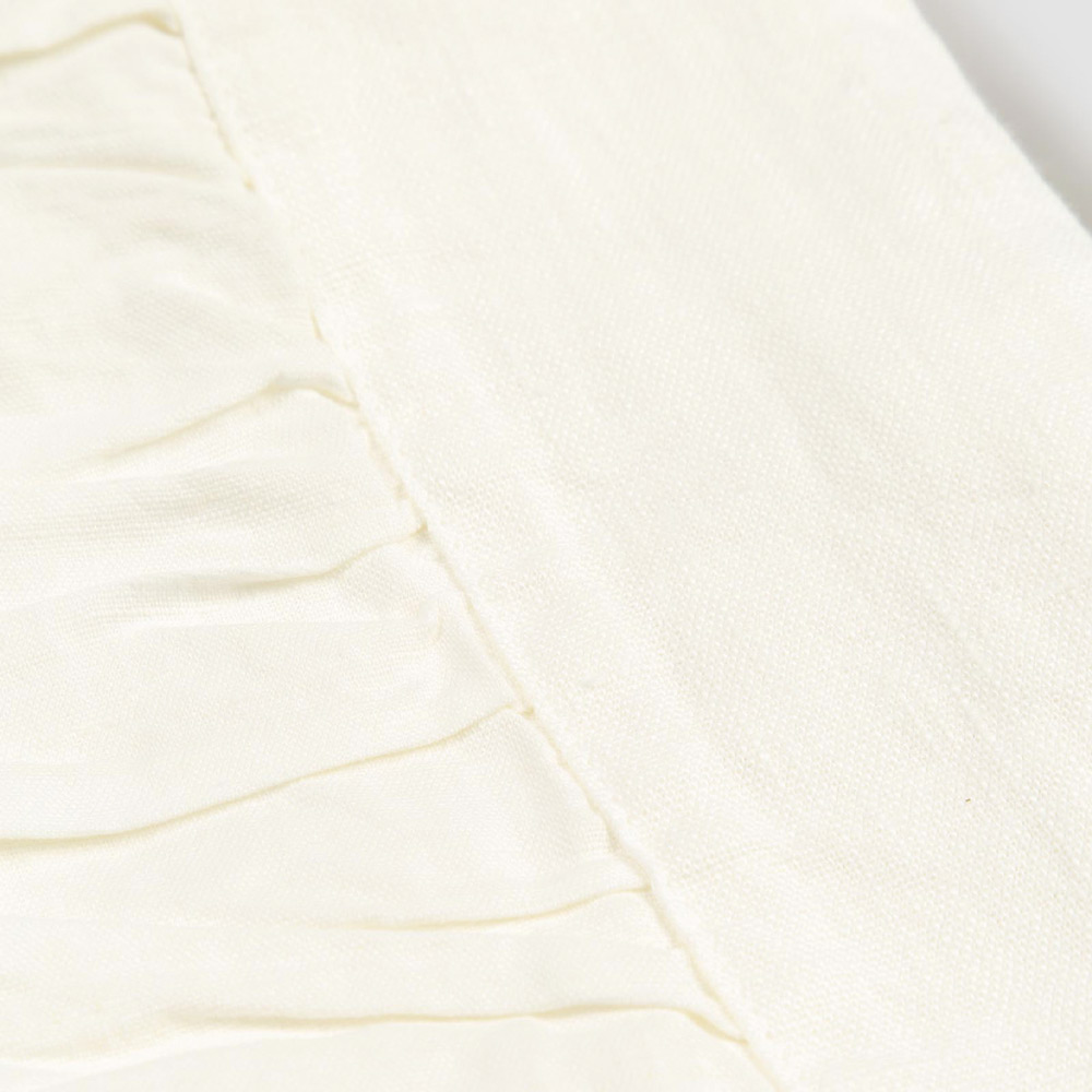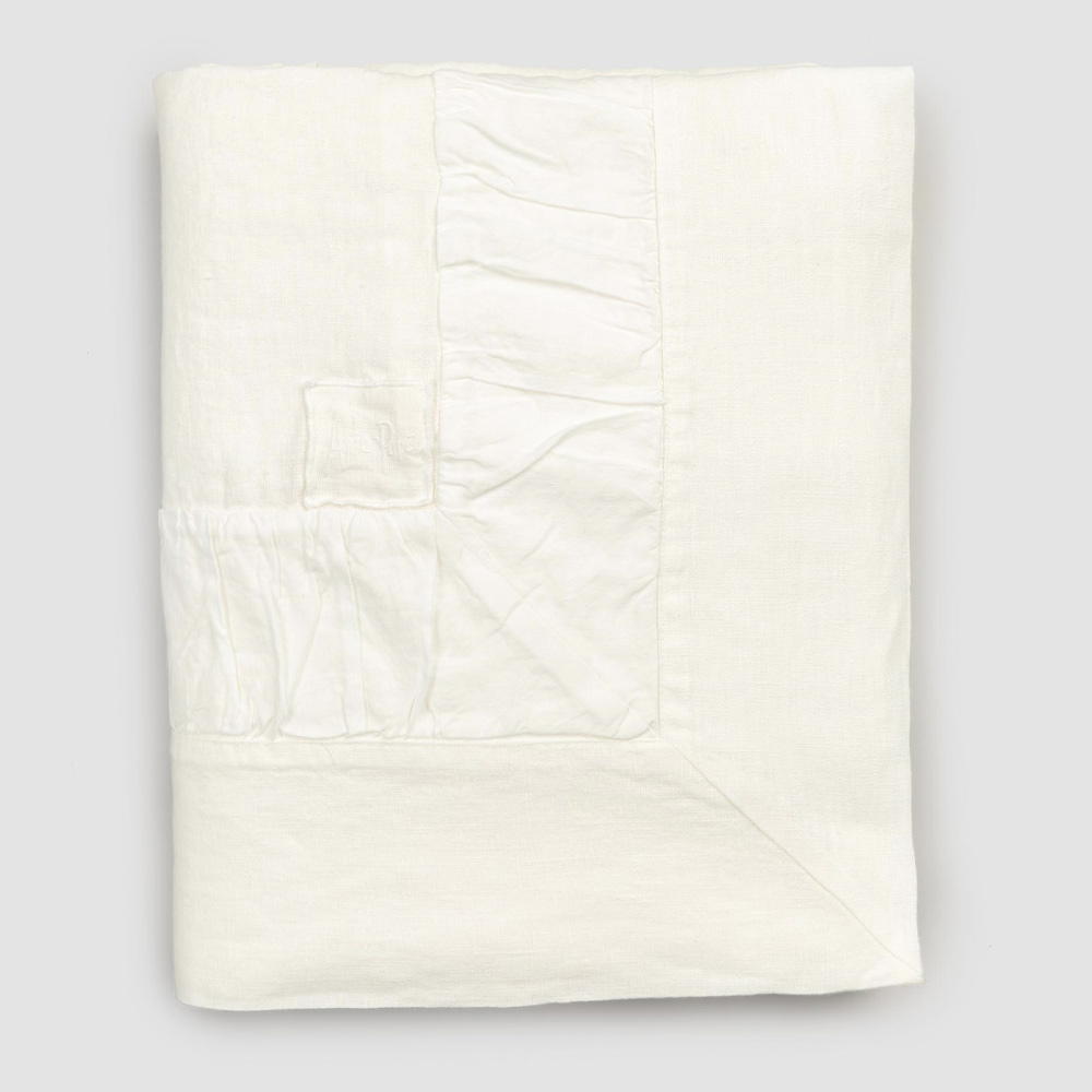Prostokątny biały lniany obrus z tłoczeniem i zagięciem, wyprodukowany we Włoszech.