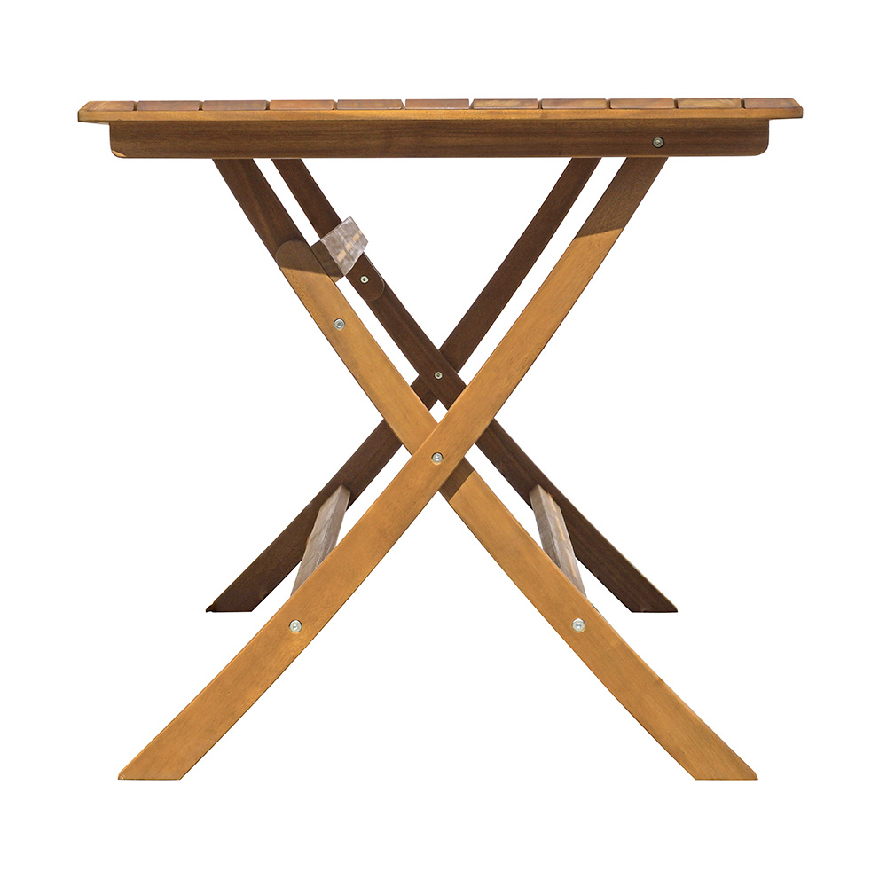 Wykonany z drewna akacjowego , znanego ze swojej wytrzymałości i trwałości, stół jest nie tylko estetyczny, ale także zaprojektowany tak, aby był odporny na działanie czynników atmosferycznych, zapewniając długą żywotność produktu. Czyste linie i kompaktowa konstrukcja idealnie pasują do każdego otoczenia na świeżym powietrzu, tworząc przyjazną przestrzeń do relaksu i spotkań towarzyskich.