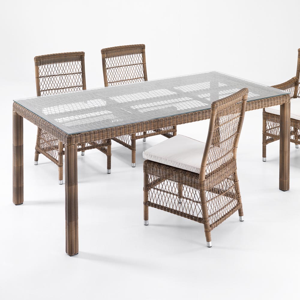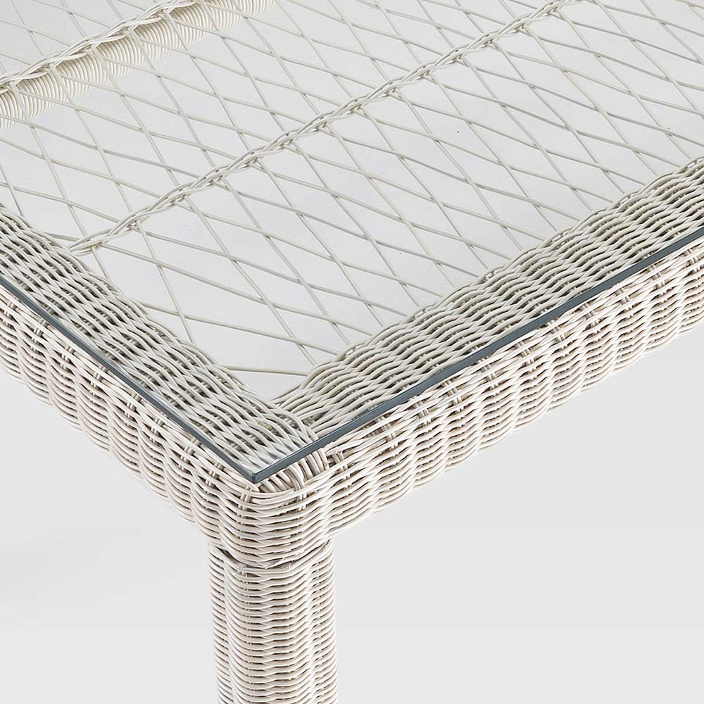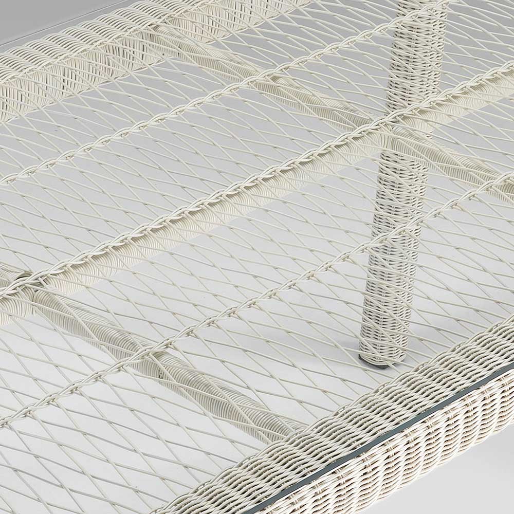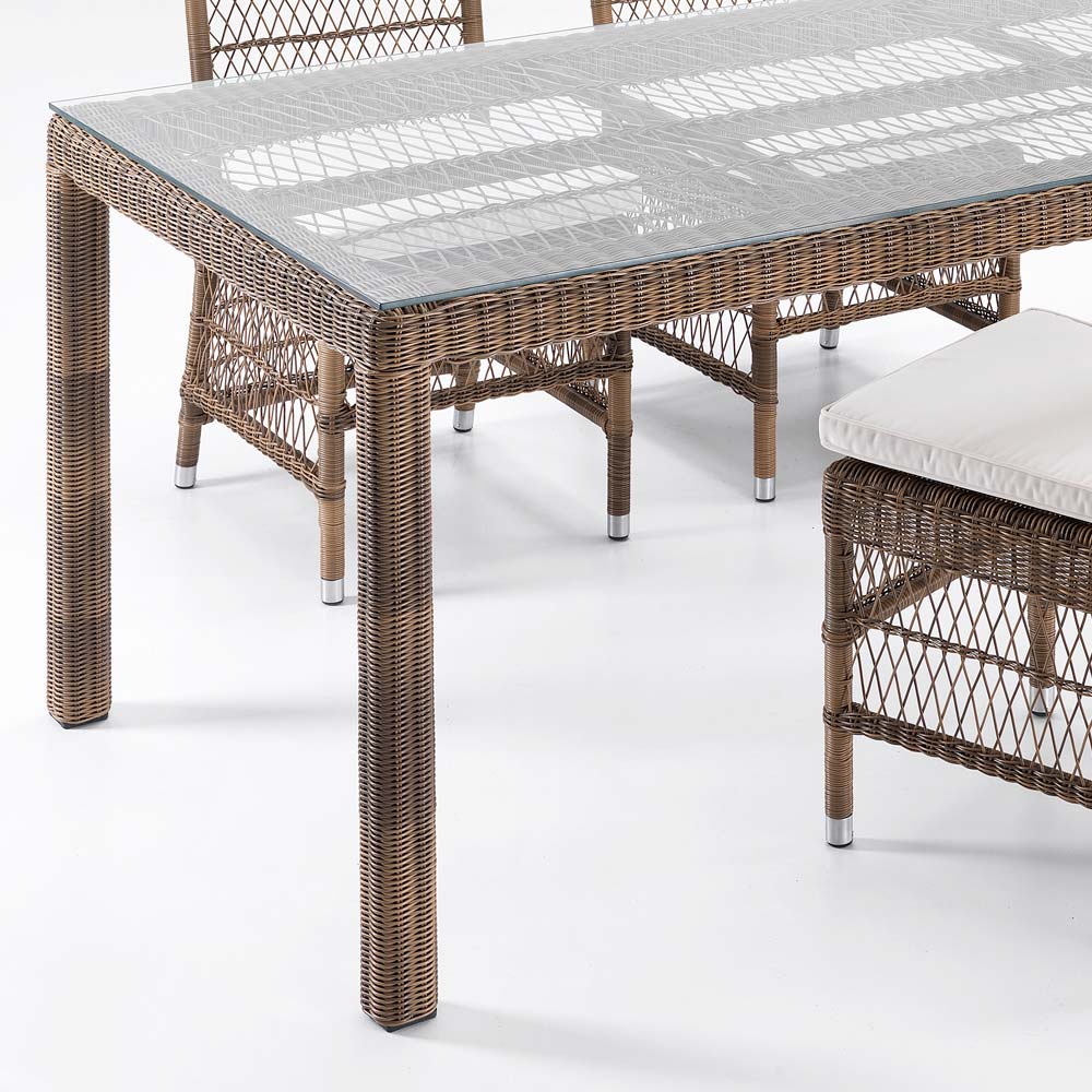 Tkany styl jest wyrafinowany i delikatny, a wraz z bardzo wysoką jakością materiałów i jego zdecydowanymi kształtami sprawiają, że stół ten jest idealny do umeblowania wnętrz i na zewnątrz, zarówno dla środowisk prywatnych, jak i kontraktowych, takich jak tarasy, werandy, ogrody, ale także znajdują idealne miejsce przy basenie.