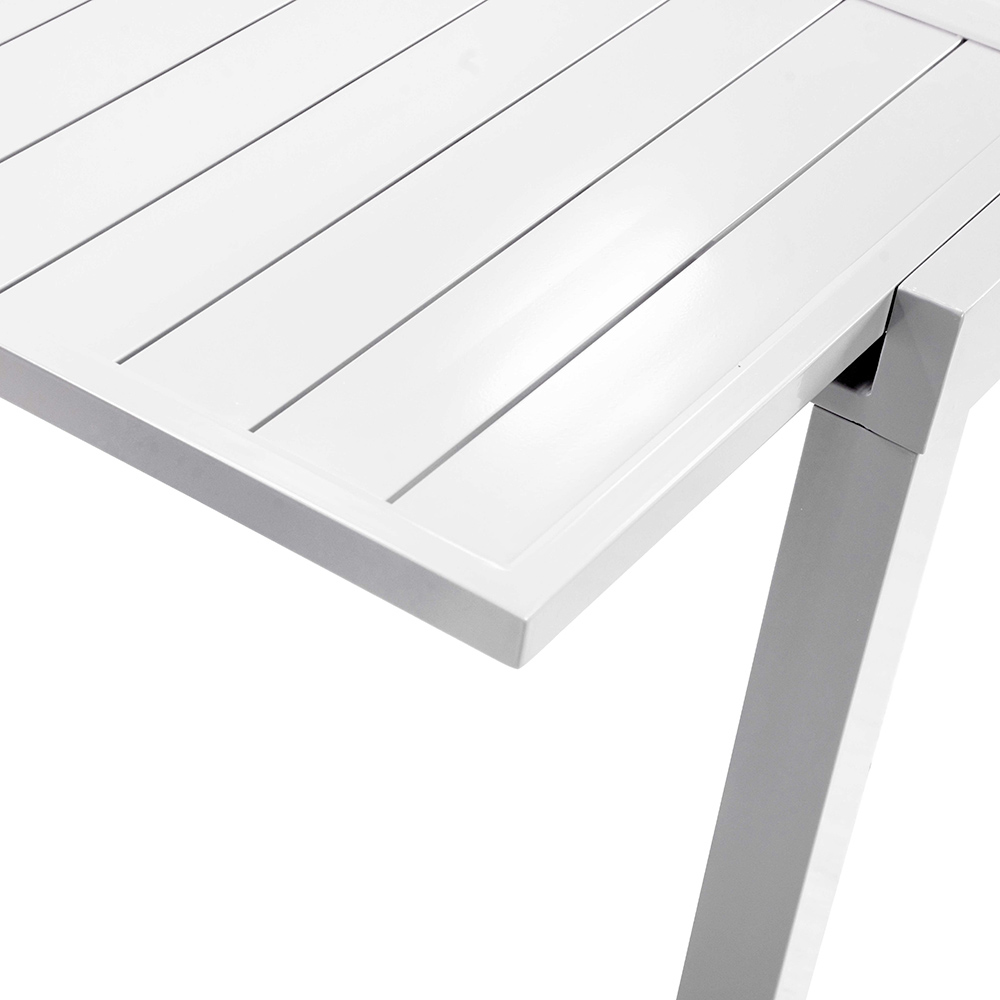 Dzięki rozsuwanemu mechanizmowi, stół oferuje elastyczność, aby z łatwością pomieścić dodatkowych gości, dzięki czemu idealnie nadaje się na przyjęcia, przyjęcia lub po prostu relaks na świeżym powietrzu. Jego aluminiowa rama gwarantuje długotrwałą trwałość i odporność na warunki atmosferyczne, zapewniając, że Twoja inwestycja jest równie praktyczna, co piękna.