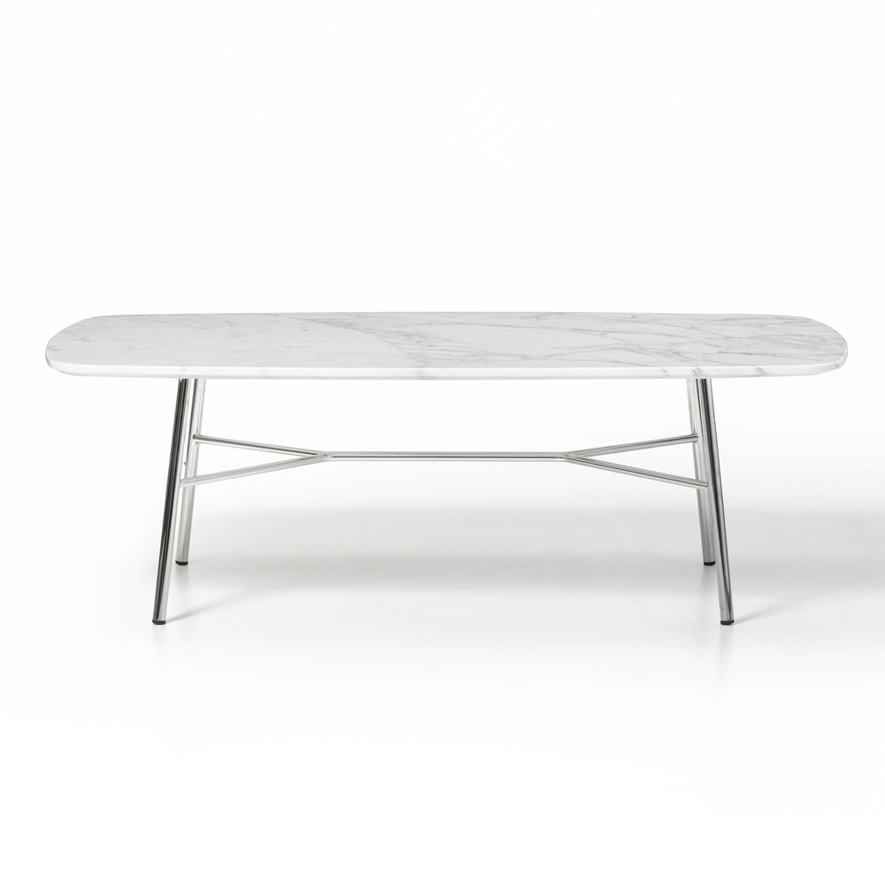 Stolik kawowy z marmuru i malowanego metalu Made in Italy.