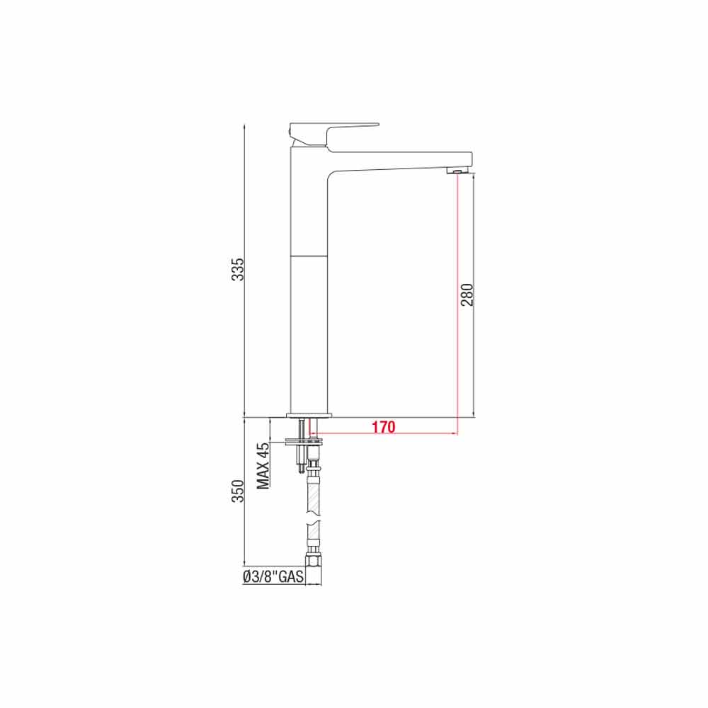 Wymiary : H 280 mm (całkowita wysokość 335 mm)