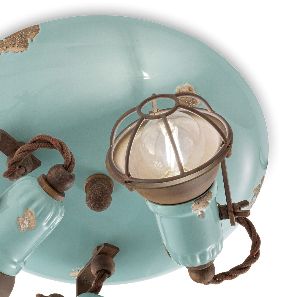 Lampa sufitowa 3 reflektory w ceramicznym i żelaznym wzornictwie przemysłowym wyprodukowana we Włoszech przez Ferroluce.