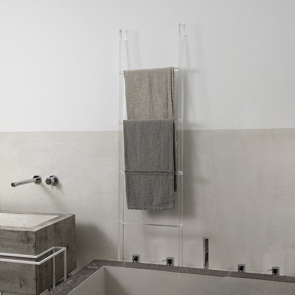 Drabinka łazienkowa z przezroczystego kryształu akrylowego, 2 rozmiary wyprodukowana we Włoszech.