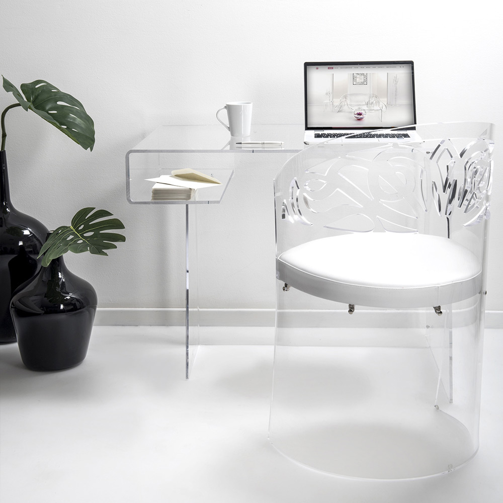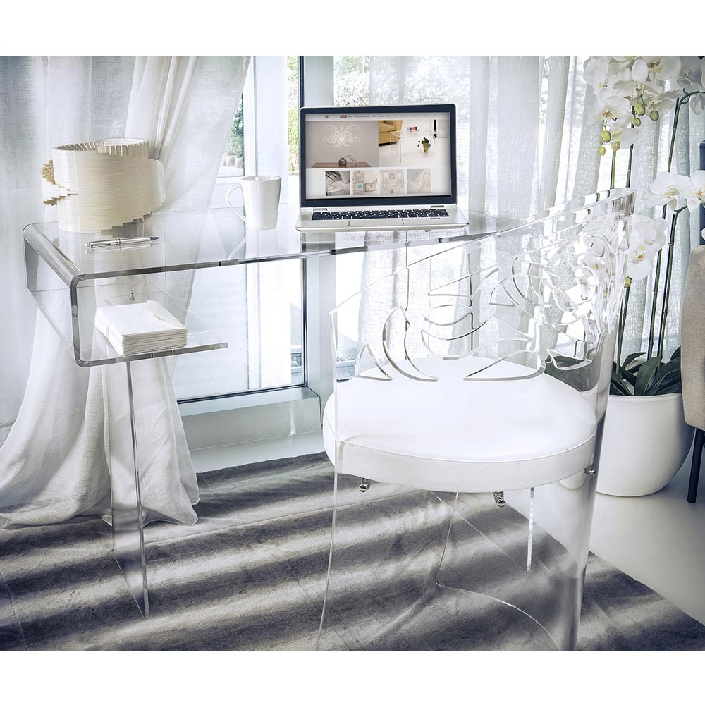 Nowoczesne biurko z przezroczystego pleksi z półką Made in Italy.