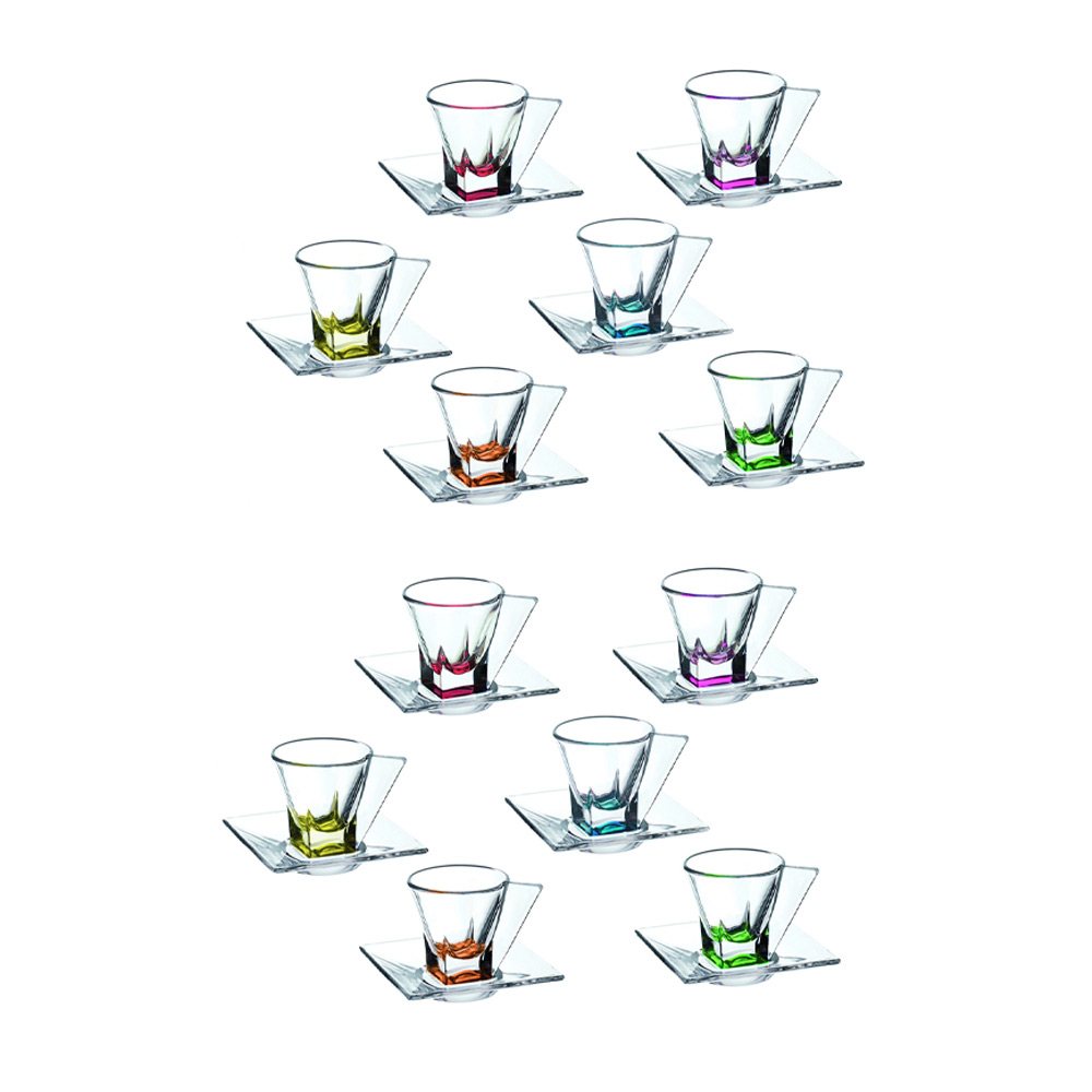 Komplet filiżanek do kawy z przezroczystego lub kolorowego kryształu ekologicznego, 12 sztuk wyprodukowany we Włoszech.
