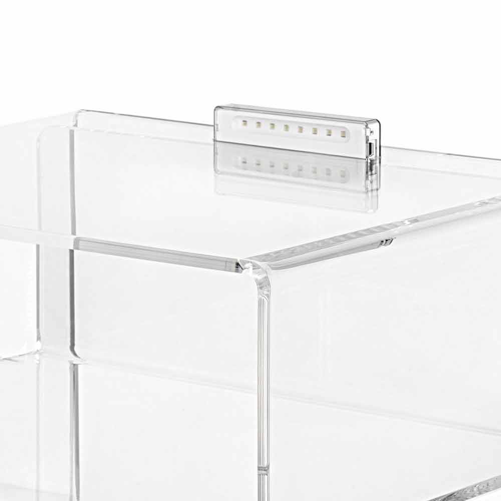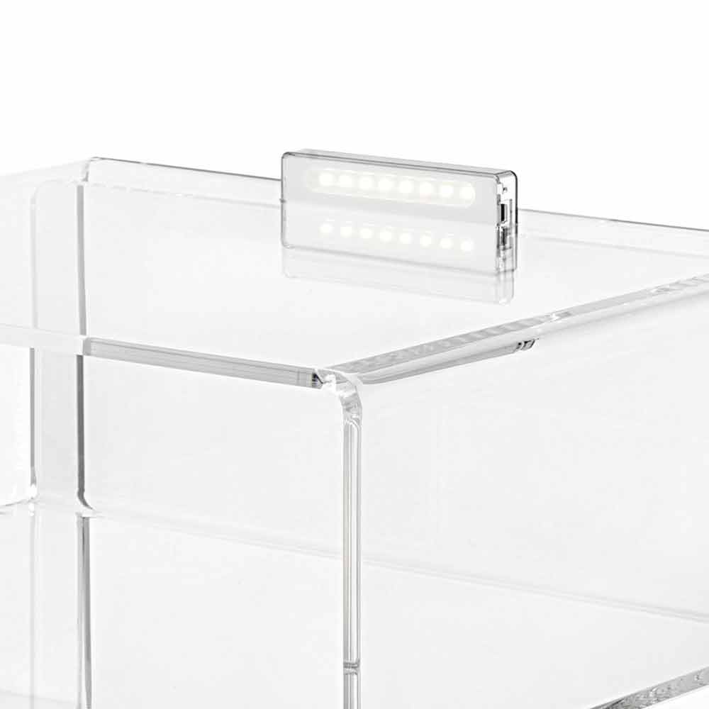 "Dotyk" światła: wystarczy go dotknąć i praktyczny stolik nocny Adelia wykonany w 100% z pleksi PMMA z przeźroczystego, pierwotnego polimeru, zapala się i rozświetla pomieszczenie. Wbudowane oświetlenie LED można zdemontować; bateria jest litowa, a przewód zasilający znajduje się w zestawie. Światło włącza się i wyłącza po prostu dotykając świetlistego ciała. Jasność i jasność są utrzymywane na stałym poziomie i niezmienione w czasie. Plexiglas PMMA z pierwszego polimeru jest nietoksyczny, hipoalergiczny, bezwonny i antybakteryjny. 100% do recyklingu. Zaprojektowany, zaprojektowany i wyprodukowany we Włoszech z włoskimi materiałami.