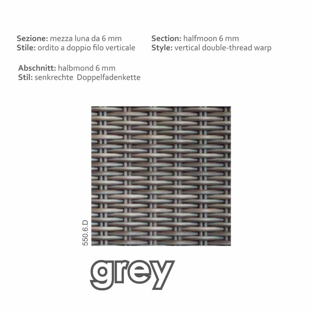 Pufa posiada konstrukcję aluminiową pokrytą polietenem plecionym ręcznie w kolorze szarym o wysokiej jakości, grubość 6 mm