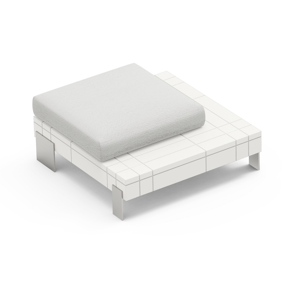 Ta nowoczesna pufa jest przykładem współczesnego designu, który łączy w sobie funkcjonalność i styl w wyjątkowy i urzekający sposób. Podstawa z geometrycznym wzorem przypominającym patchwork, dodaje całości charakterystycznej wizualnej tekstury i powiewu witalności , czyniąc ją odważnym dodatkiem do każdego wnętrza.