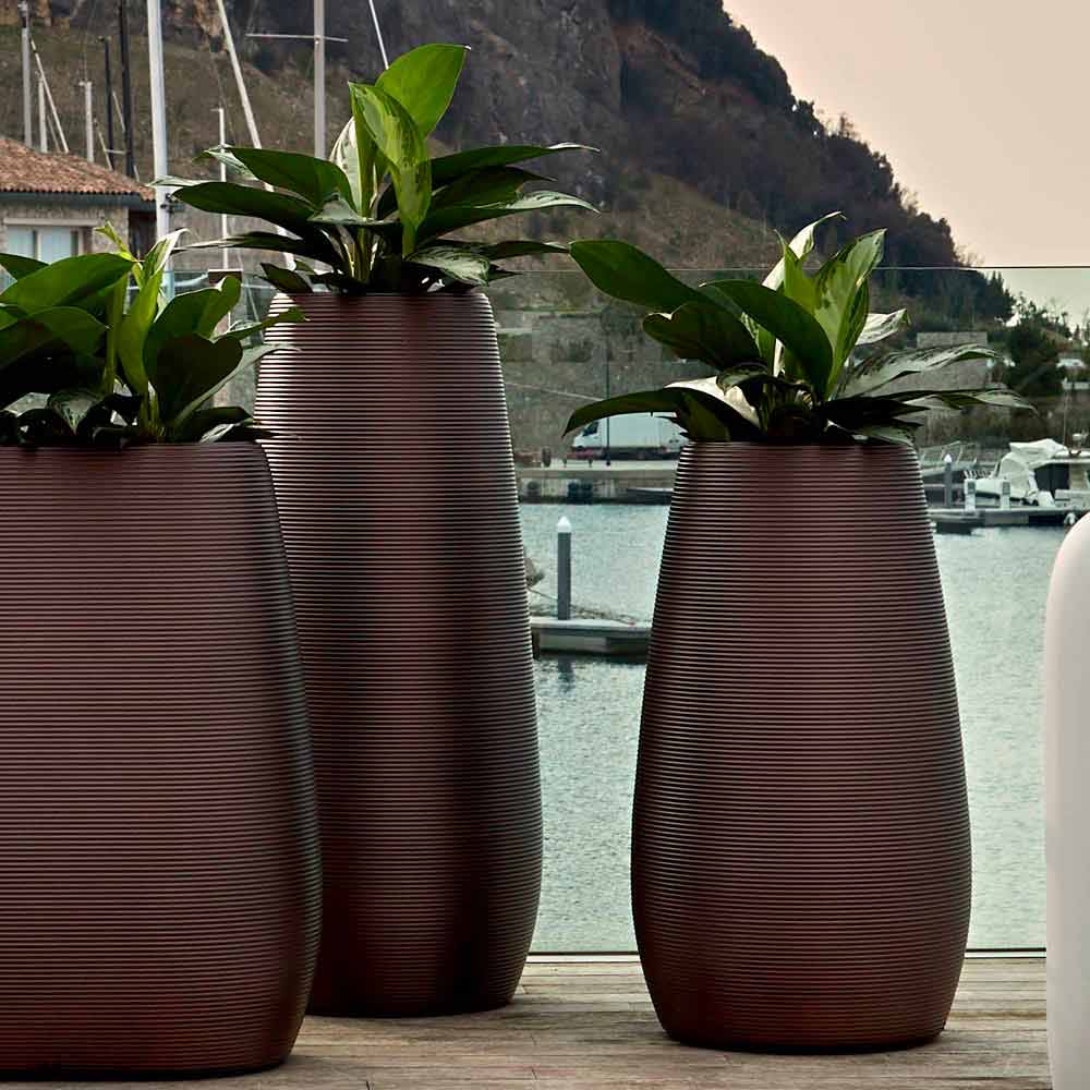 Nowoczesny wazon do wnętrz lub na zewnątrz z ciemnego perłowego plastiku, dostępny w 3 rozmiarach, wyprodukowany we Włoszech, 2 sztuki.