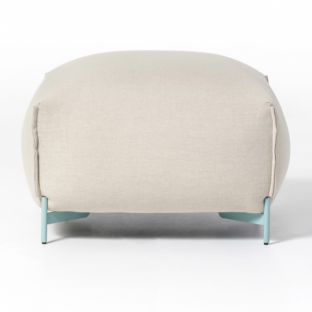 Pufa zewnętrzna pokryta tkaniną z metalowymi nóżkami Made in Italy.