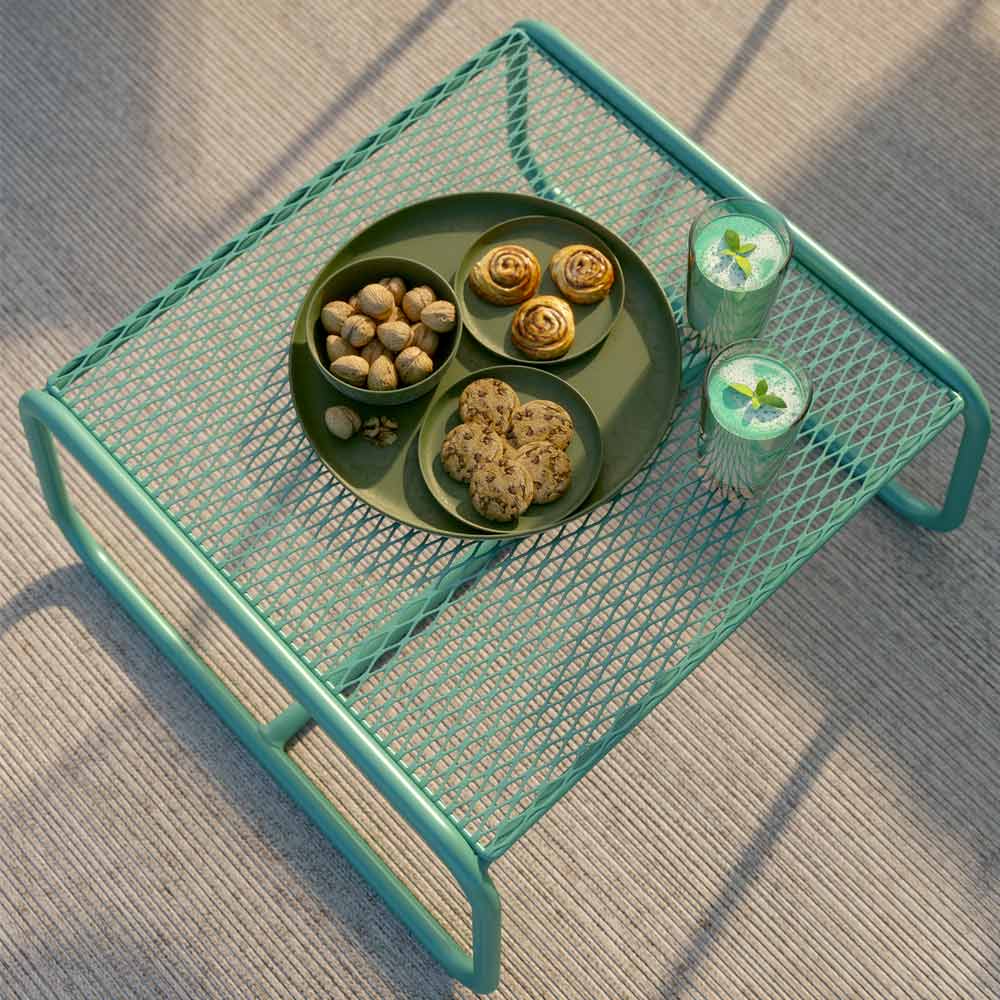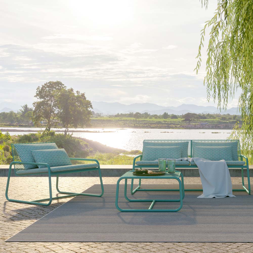 zewnętrzny stolik kawowy ma rygorystyczny projekt o zdecydowanie współczesnym smaku, ale solidną i imponującą sylwetkę łagodzą zaokrąglone nogi. Konstrukcja pozwala pełnić rolę pufy, pufy do łączenia z fotelem dla większego komfortu lub jako stolik kawowy.