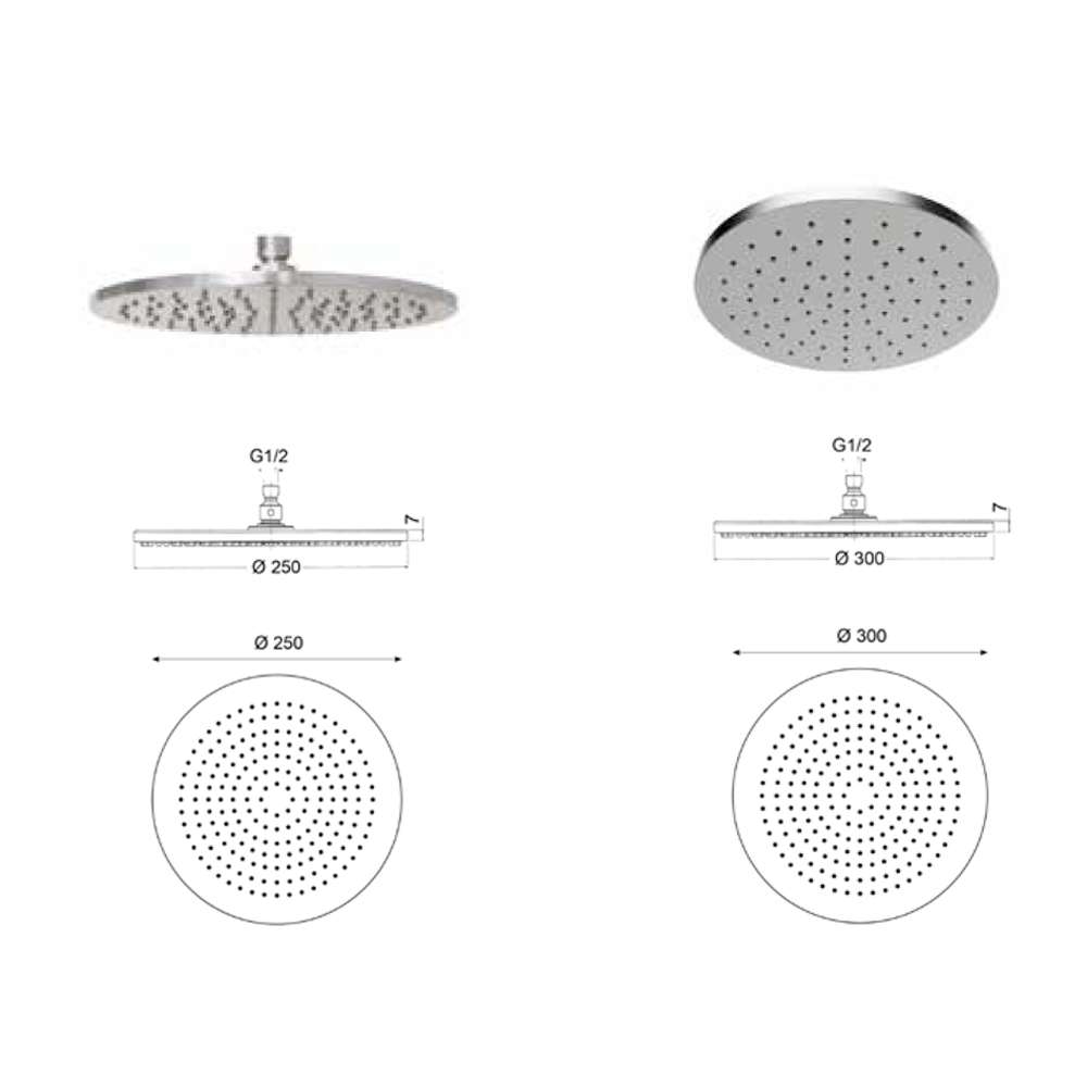 Dostępne rozmiary:- głowica prysznicowa: średnica 25 cm x wysokość 7 cm - ramię 35 cm