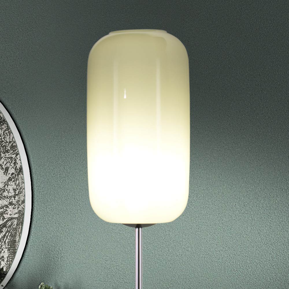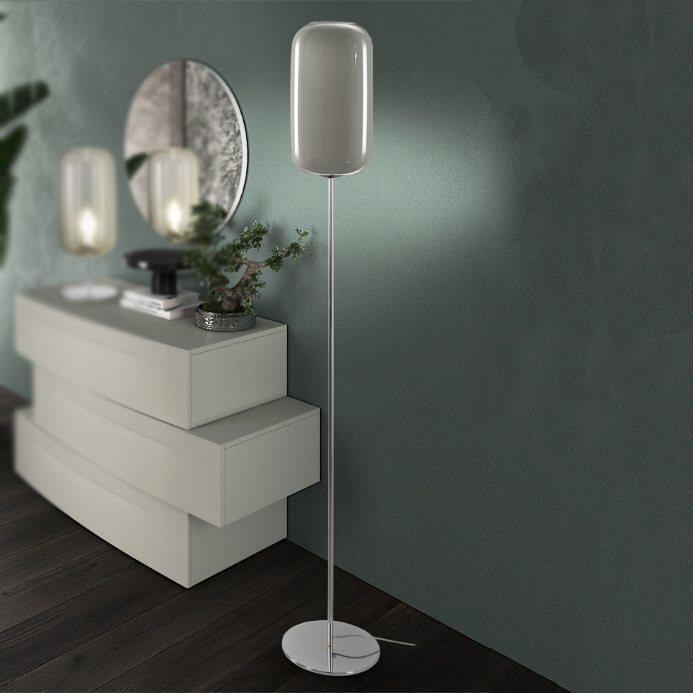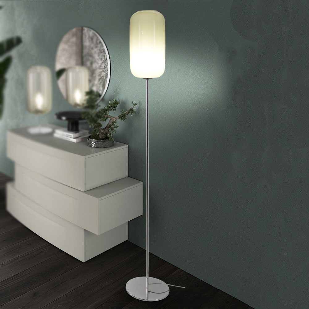Nowoczesna, ręcznie wykonana lampa podłogowa z dmuchanego szkła weneckiego z metalową podstawą.