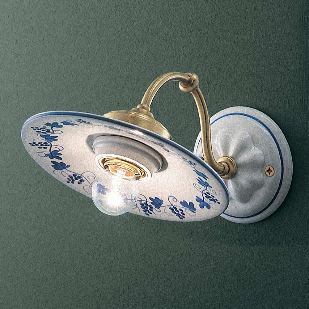 Vintage ręcznie malowany żelazny i ceramiczny kinkiet wyprodukowany we Włoszech przez Ferroluce.