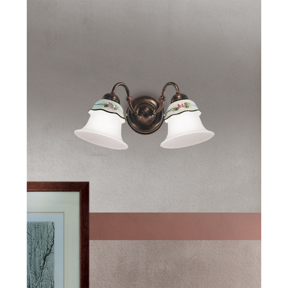 Kinkiet z żelaza, ręcznie zdobiona ceramika i szkło trawione kwasem wyprodukowane we Włoszech przez Ferroluce.