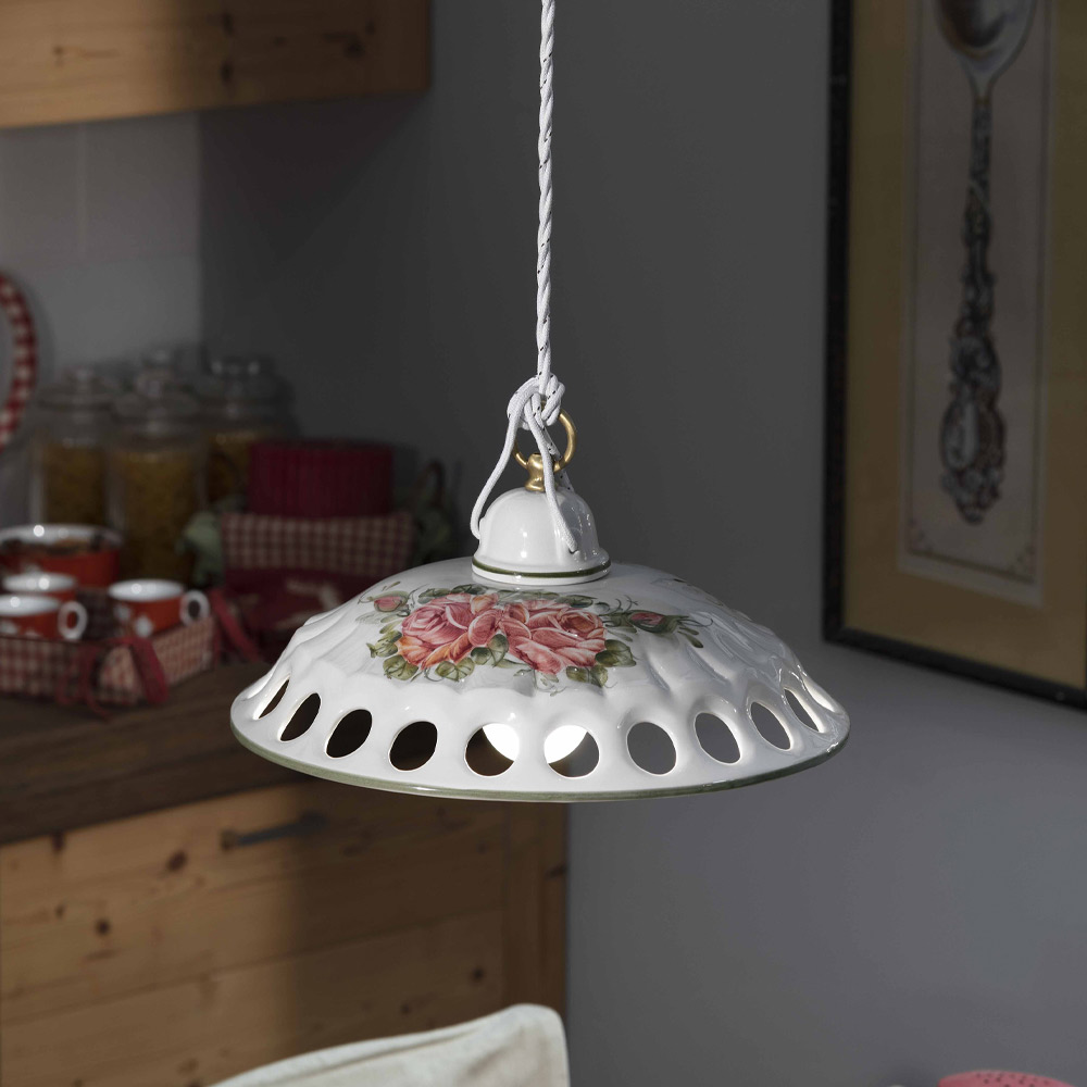 Lampa wisząca z metalu i ceramiki ręcznie wykonanej z taśmami, wyprodukowana we Włoszech przez Ferroluce.