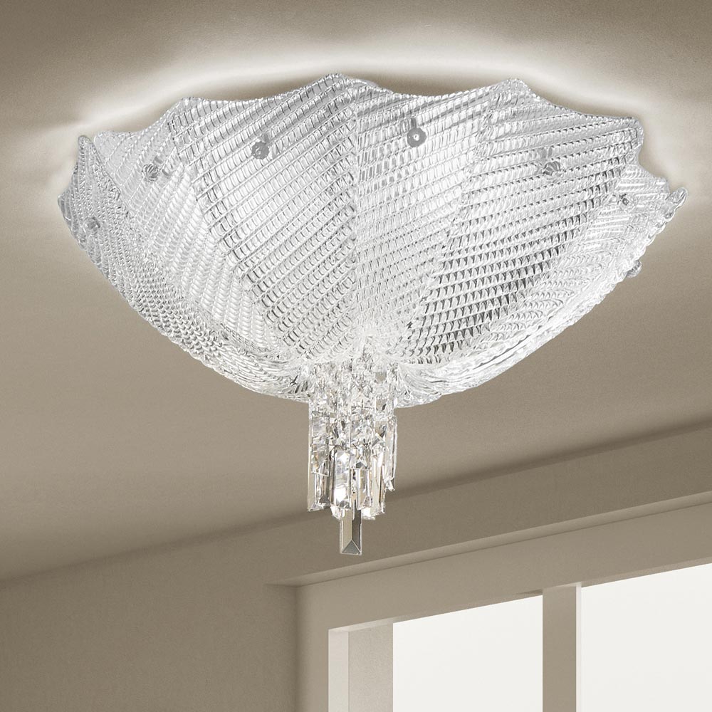 obróbce szkła na gorąco , które jest również ozdobione wiszącymi pryzmatami, które podkreślają i sprawiają, że załamanie światła jest wyjątkowe, co daje wyjątkowy, ekskluzywny i wyrafinowany efekt.