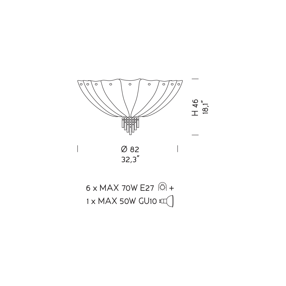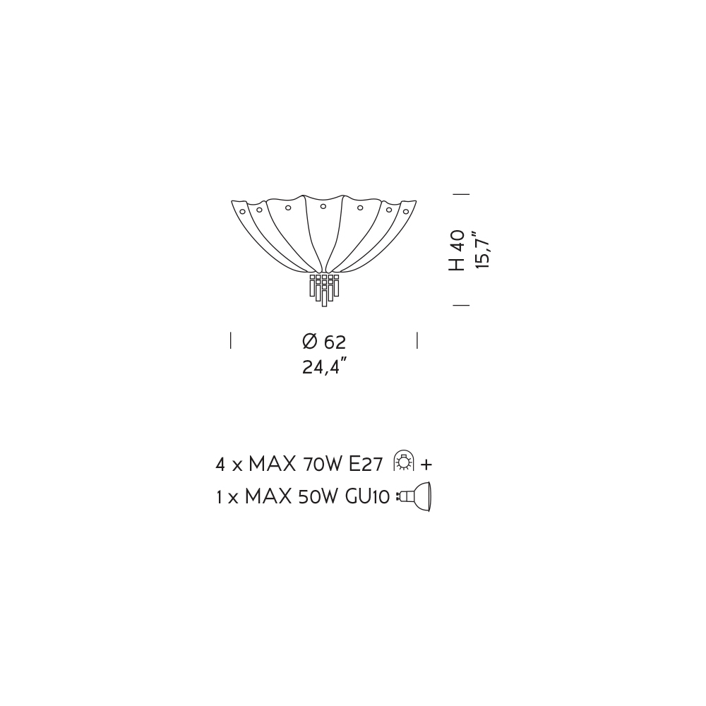 Żarówki (brak w zestawie) : 5/7 x MAX 70W E27 + 1 x MAX 50W GU10