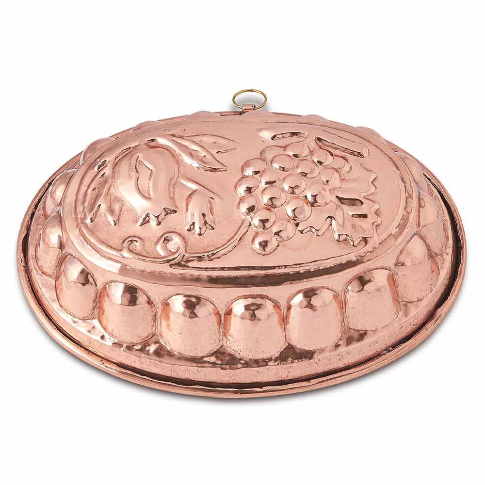 Owalna forma do pieczenia z dekoracją winogronową wykonana ręcznie we Włoszech z cynowanej miedzi.