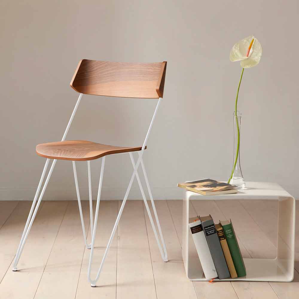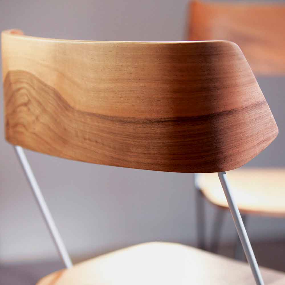 Smukła i cienka rama stwarza wrażenie unoszącego się oparcia, nadając meblowi wrażenie lekkości i dyskretnej osobowości, idealnej do dopełnienia otoczenia przyjemnym i zaskakującym dotykiem. Nowoczesna i innowacyjna cecha stali łączy się z ponadczasową elegancją i majestatem drewna, tworząc świeży i rewolucyjny pomysł na umeblowanie przeznaczony dla tych, którzy lubią upiększać swoje domowe przestrzenie w trzeźwy i istotny sposób, jednocześnie tworząc idealną harmonię stylów i ciepły i przyjazną atmosferę.