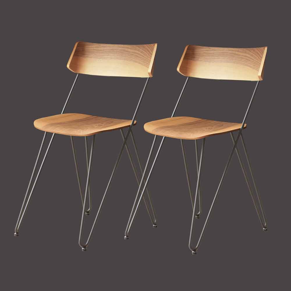 Proste i nowoczesne krzesło do jadalni lub kuchni wykonane ręcznie we Włoszech ze stalową konstrukcją oraz siedziskiem i oparciem z drewna orzechowego .