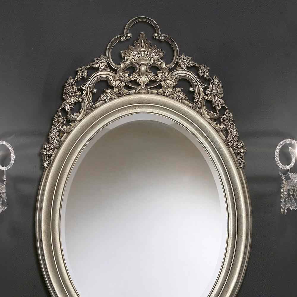 To owalne lustro to hołd dla bogactwa i barokowych detali , element emanujący elegancją. Rama jest pięknie wyrzeźbiona motywami kwiatowymi i zwojami, tworząc grę światła i cienia, która przyciąga wzrok i wzbogaca otoczenie.