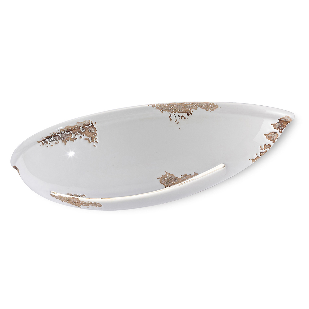 Ręcznie robiony przemysłowy kinkiet w kształcie półksiężyca z ceramiki i metalu wyprodukowany we Włoszech przez Ferroluce.