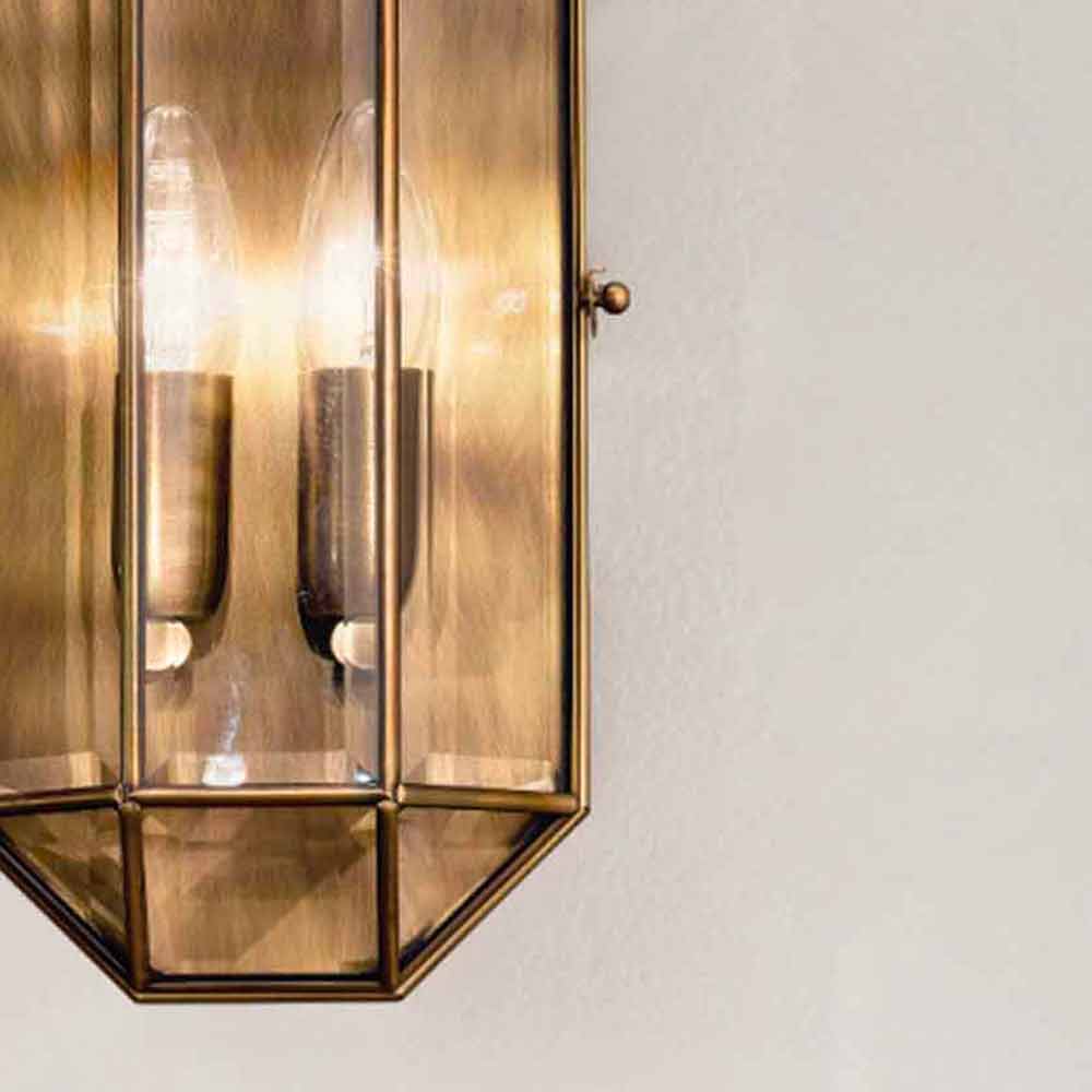 Kinkiet ze szkła i brązowego mosiądzu w dwóch rozmiarach, wykonany we Włoszech kunsztem.