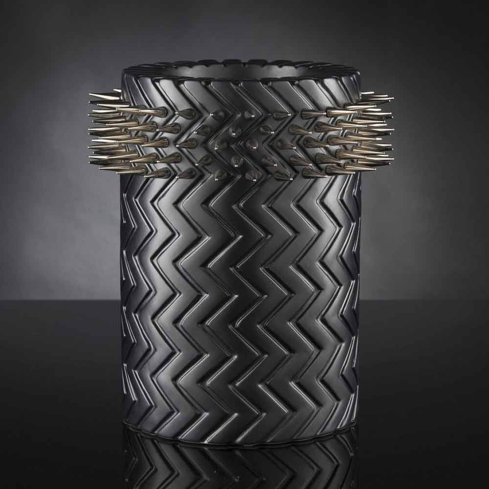 Dekoracyjny wazon z matowej czarnej ceramiki ze stalowymi gwoździami wykonane przez rzemiosło Made in Italy . Imponująca estetyka z silną, współczesną osobowością podkreśloną przez użycie dwóch różnych materiałów połączonych w celu stworzenia innowacyjnego i rewolucyjnego pomysłu idealnego dla tych, którzy kochają umeblować swoje przestrzenie w wyjątkowy sposób iz charakterem. Produkcja rzemieślnicza stanowi jedną z jej mocnych stron, ponieważ zwiększa i podkreśla wartość i jakość produktu, dając życie ekskluzywnemu i wyrafinowanemu wynikowi . Idealny styl dla najróżniejszych środowisk, od wyposażenia domu po wyposażenie hoteli, restauracji, stref kontraktowych, spa, ale także jako oprawa imprez i wesel.