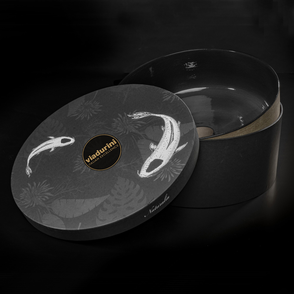 Umywalka nablatowa o okrągłym kształcie z gliny ogniotrwałej wykonana ręcznie we Włoszech i obrócona ręcznie podczas gotowania na trzecim ogniu. Jego estetyka charakteryzuje się doskonałym połączeniem naturalnej woskowanej i wodoodpornej powierzchni zewnętrznej z bardziej rustykalnym stylem oraz błyszczącym i zeszklonym wnętrzem w czarnym wykończeniu, kolor par excellence elegancji i wyrafinowania związany z tajemniczą atmosferą. Każdy element umywalki jest wykonywany ręcznie , aby ożywić ekskluzywne rozwiązanie wyposażenia, o wysokiej wartości i niezrównanej jakości.
