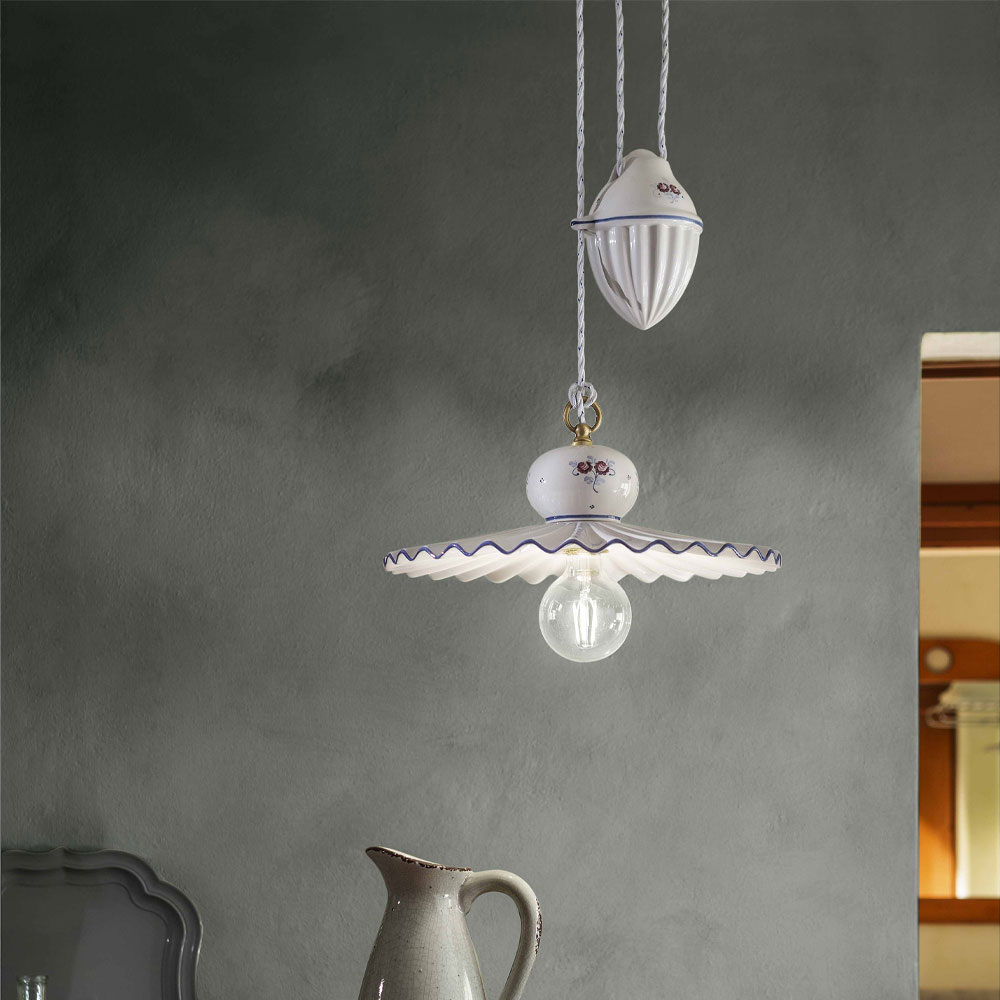Ta lampa wisząca z zatrzaskami jest w całości wykonany ręcznie z metalu i ceramiki z ręcznie malowaną dekoracją, uwypuklić kunszt i zdolności manualne rzemieślników.