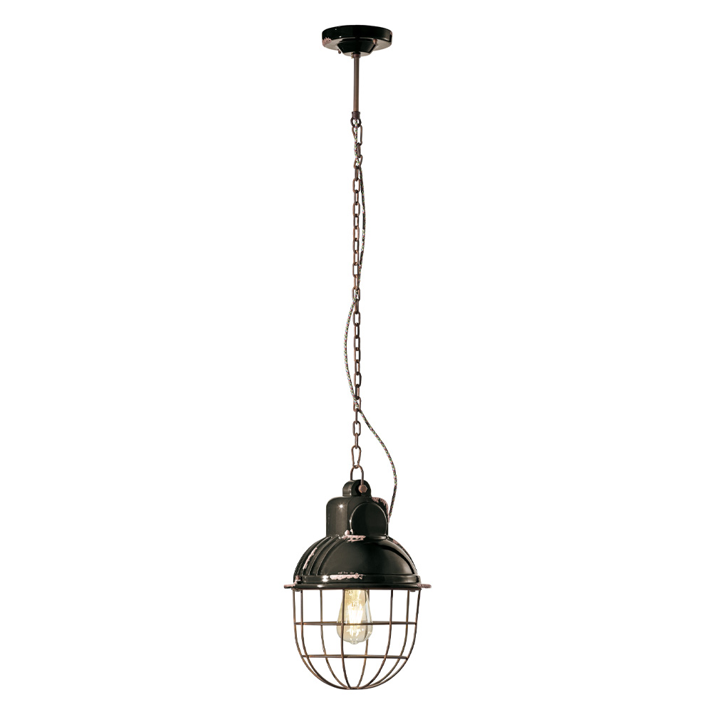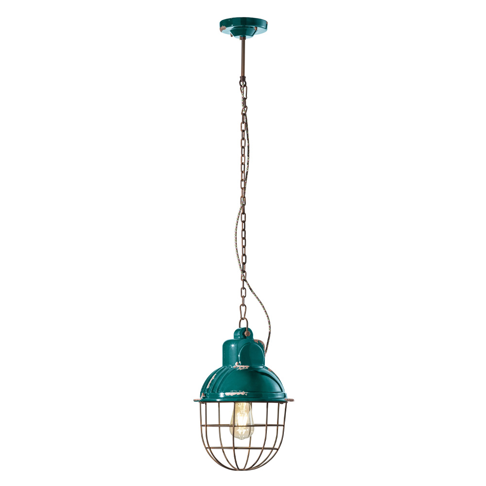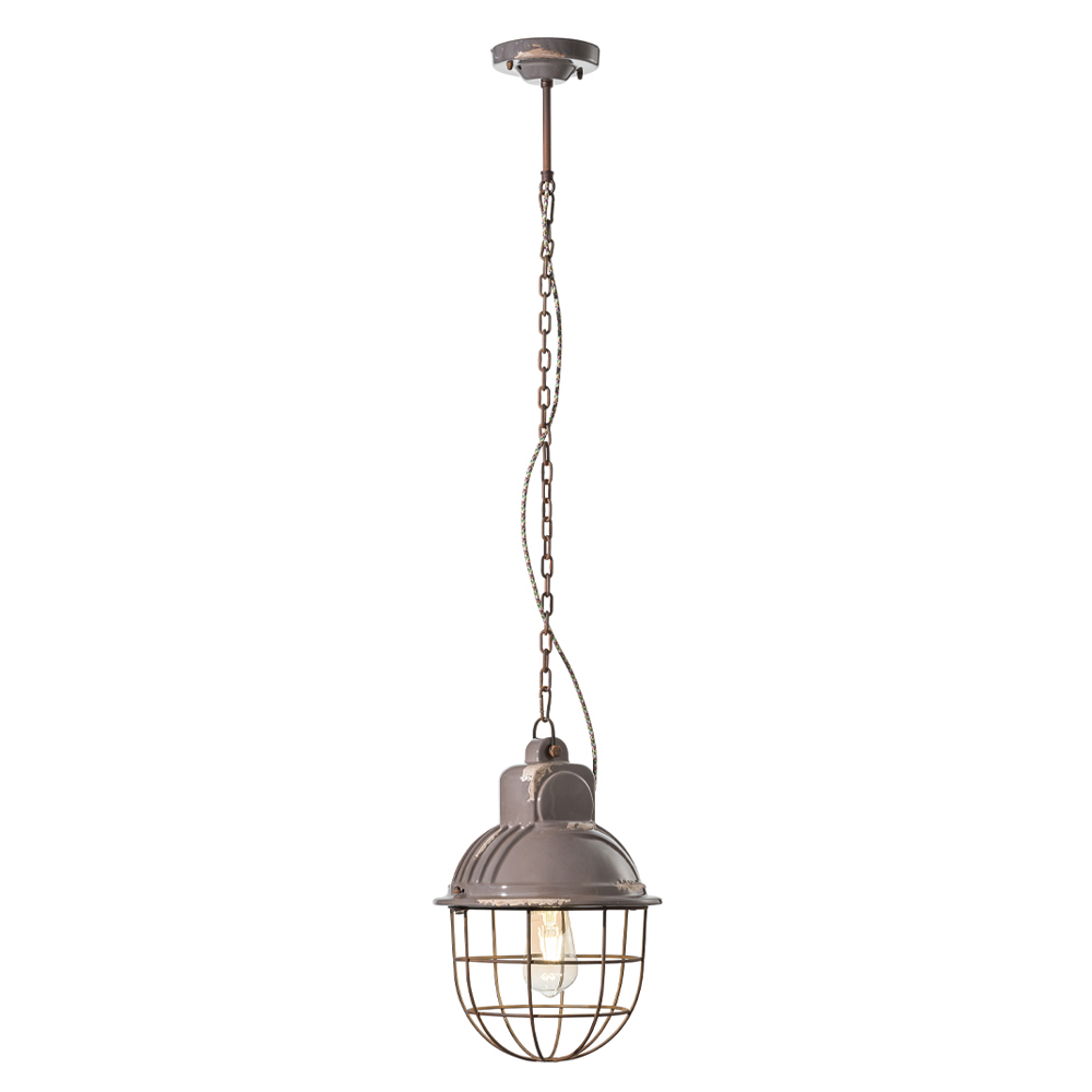 Lampa wisząca z ceramiki i żelaza z siatką, różne wykończenia przemysłowe wykonane we Włoszech przez Ferroluce.